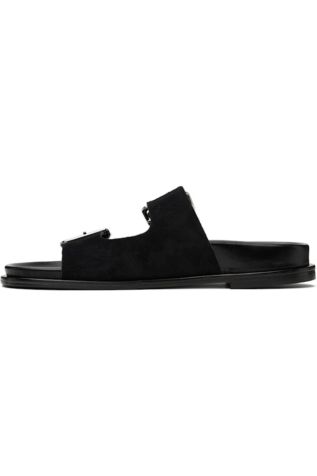 Замшевые сандалии черного цвета.
