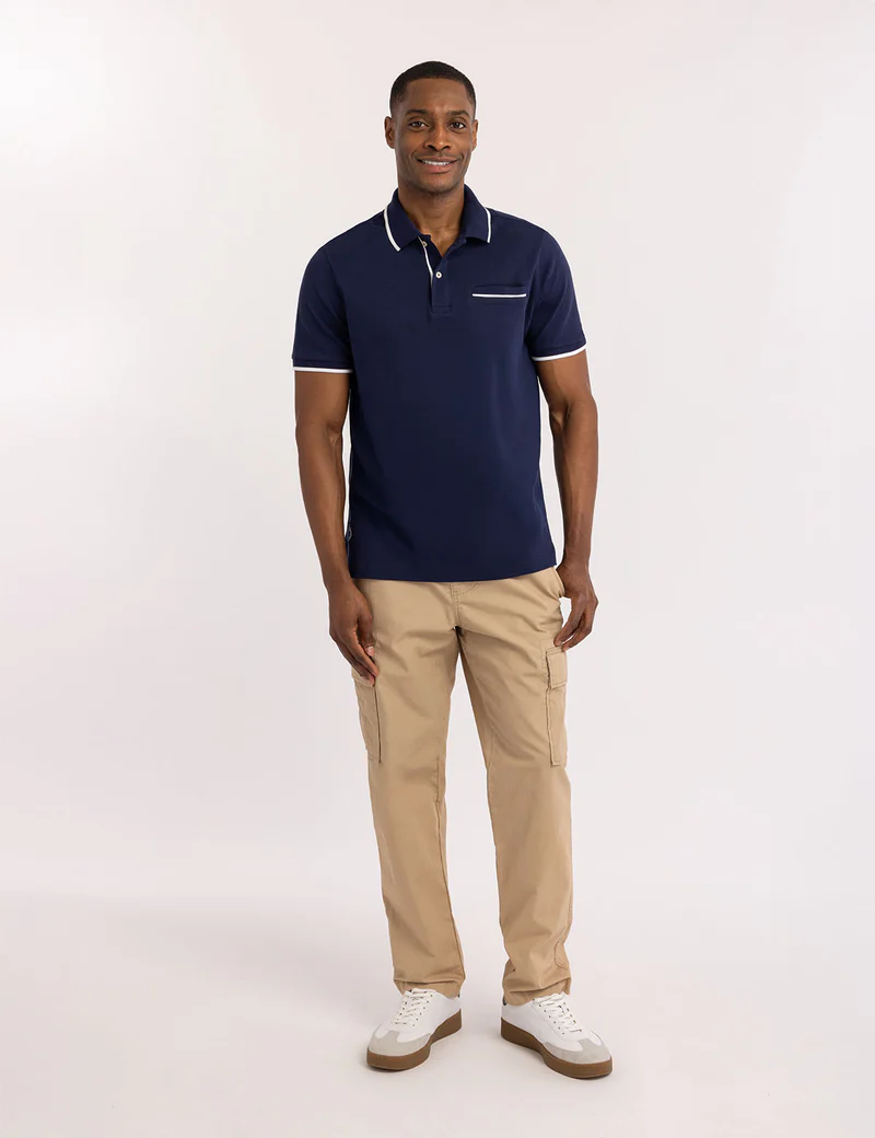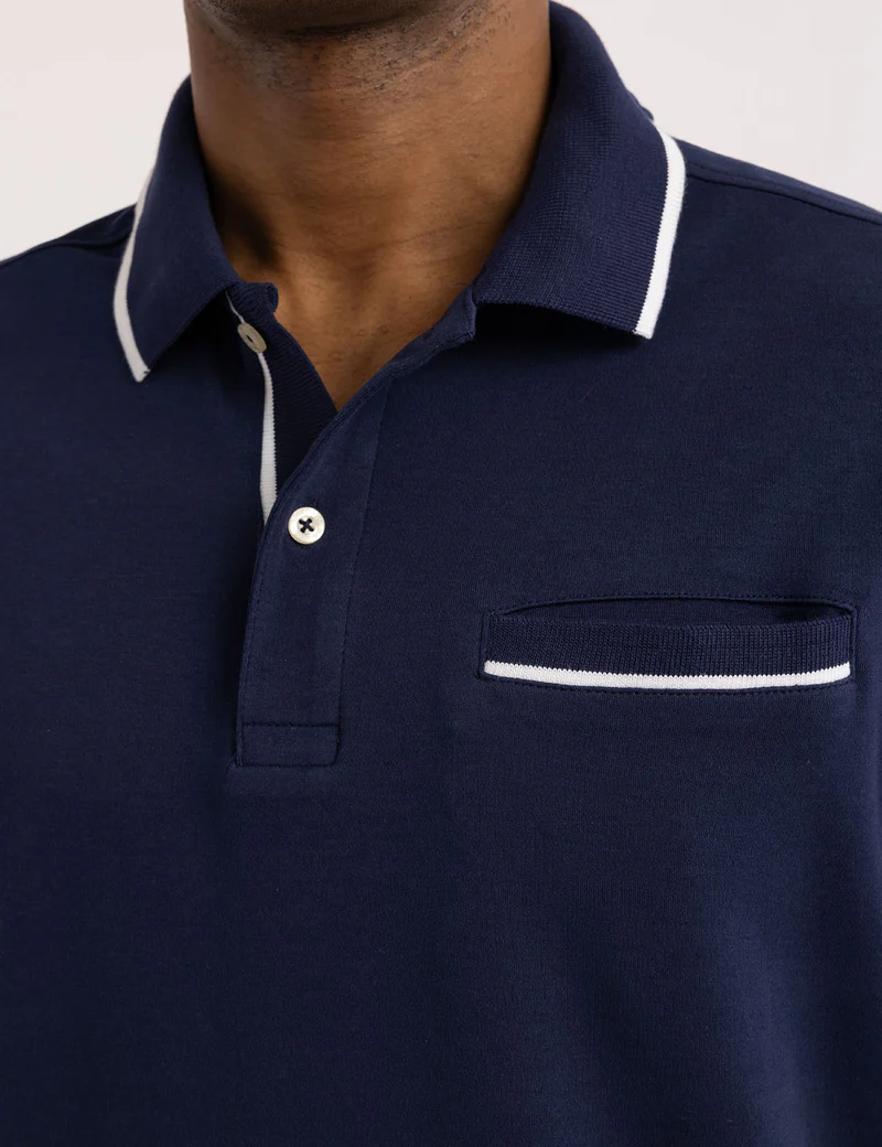 Однотонная рубашка-поло из ткани интерлок со скрытым карманом.