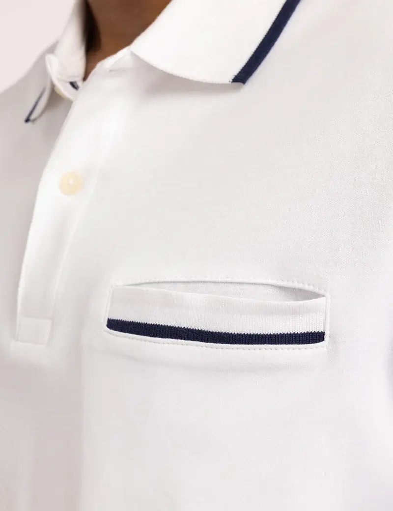 Однотонная рубашка-поло из ткани интерлок со скрытым карманом.