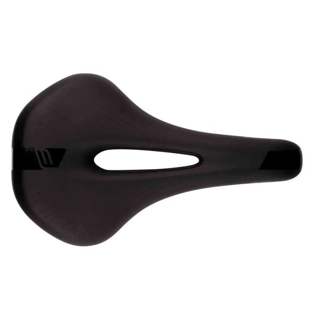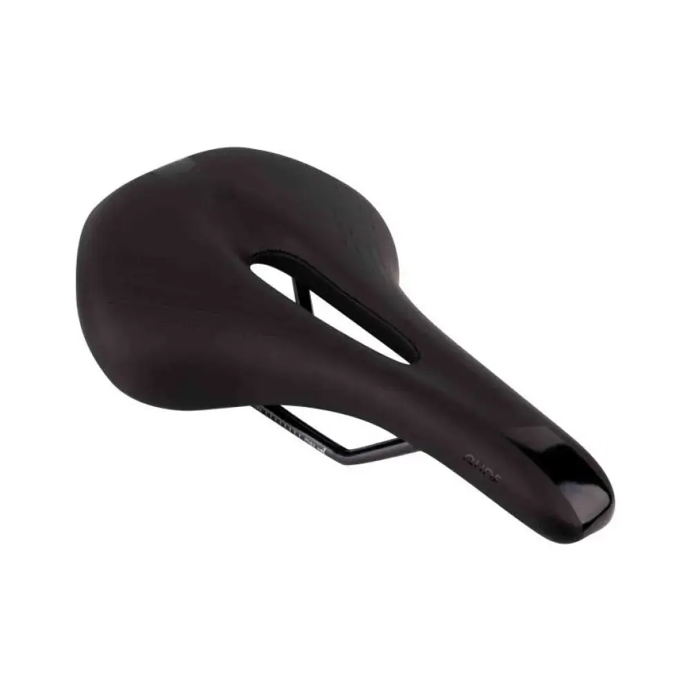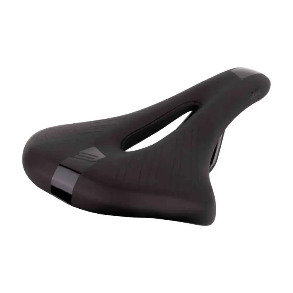 Спортивное седло округлой формы со слоем набивки средней мягкости на более узкой нейлоновой конструкции и продольным отверстием для снижения давления в чувствительных местах для обеспечения длительного комфорта при езде.
