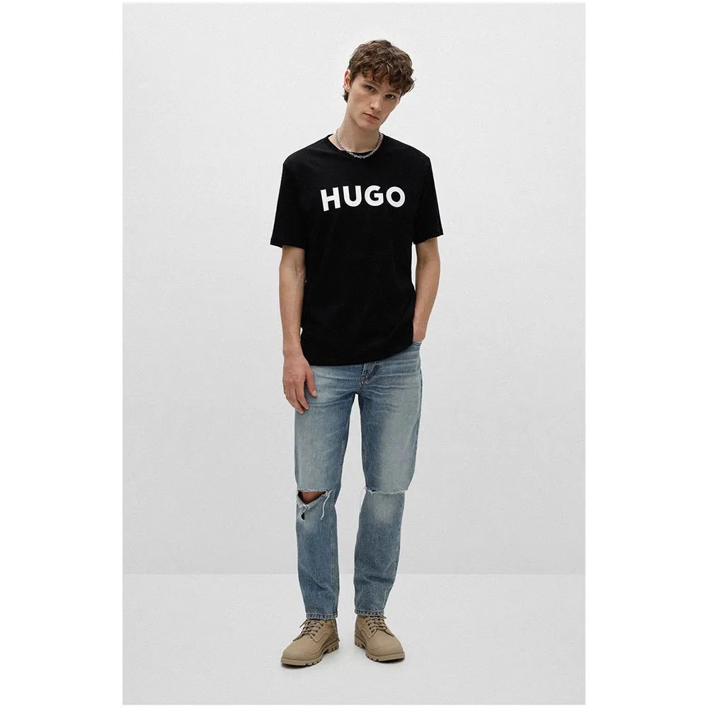 Незаменимая футболка от HUGO Menswear. Футболка прямого кроя из чистого хлопкового трикотажа украшена контрастным логотипом HUGO на груди. Для наших товаров RESPONSIBLE мы всегда используем как минимум на 60% больше экологически чистого сырья. Покупая этот товар, вы вносите свой вклад в защиту окружающей среды и устойчивое хлопководство в Африке. «Хлопок, произведенный в Африке» — это инициатива фонда Aid by Trade. Хлопок выращивается исключительно за счет дождевой воды, поэтому дополнительная вода не требуется. Эта инициатива поддерживает мелких фермеров, стремящихся к гендерному равенству, достойным условиям труда и соблюдению прав детей. Генетически модифицированные организмы не используются, а участники обучаются экологически безопасным методам ведения сельского хозяйства и органическому земледелию.