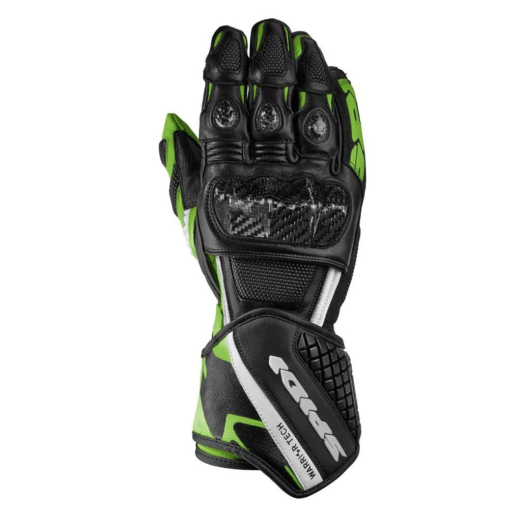 Spidi Carbo 3: гоночные кожаные перчатки, разработанные для высокопроизводительных гонок и спортивной езды. Особенности: карбоновая прокладка, защита суставов, защитный ремешок на запястье, тройная система крепления, вставки из микрофибры Clarino, керамидное усиление и специальная многослойная сторона мизинца для повышения устойчивости при сильном скольжении.