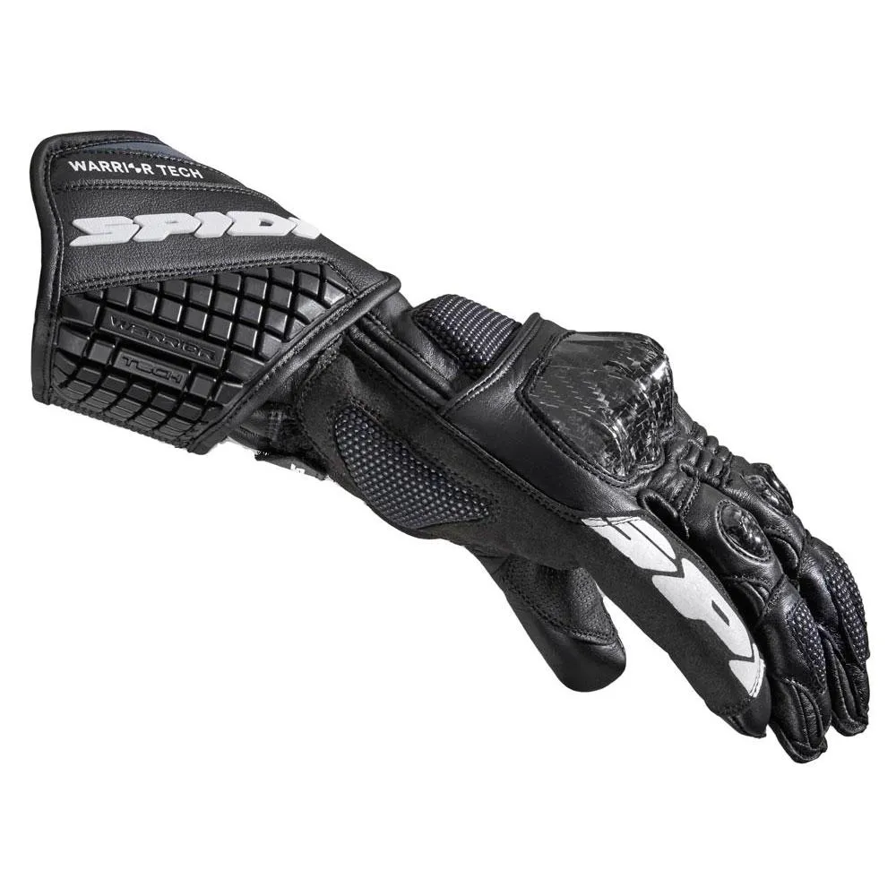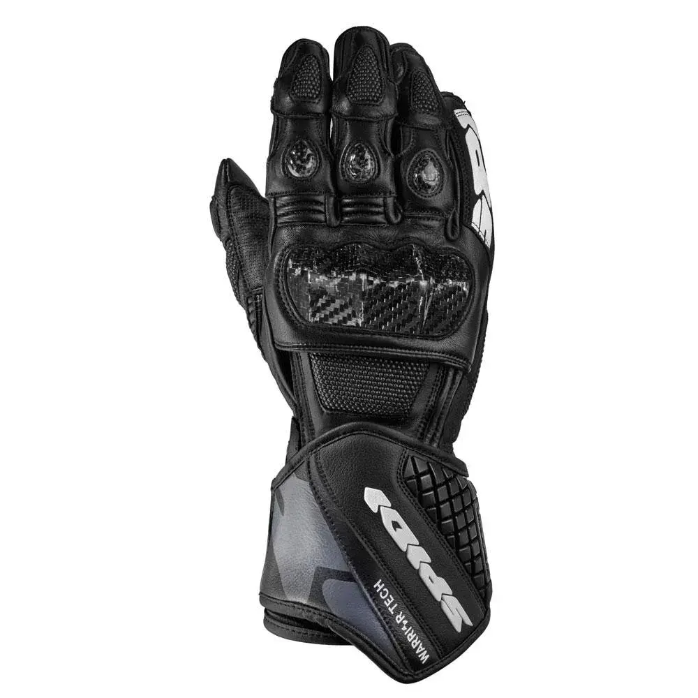 Spidi Carbo 3: гоночные кожаные перчатки, разработанные для высокопроизводительных гонок и спортивной езды. Особенности: карбоновая прокладка, защита суставов, защитный ремешок на запястье, тройная система крепления, вставки из микрофибры Clarino, керамидное усиление и специальная многослойная сторона мизинца для повышения устойчивости при сильном скольжении.