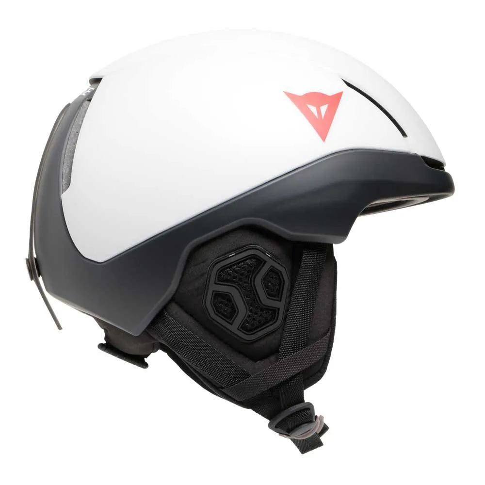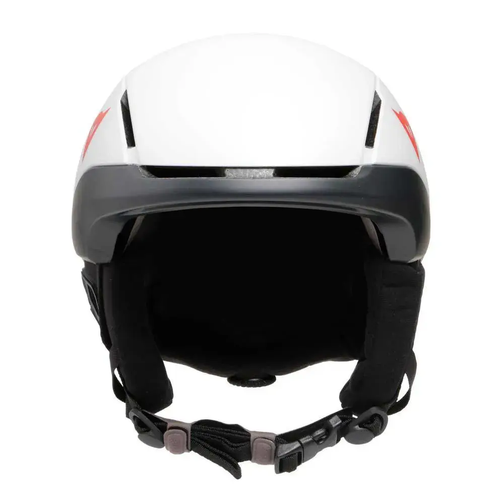 Горнолыжные шлемы Dainese разработаны с учетом особенностей головы лыжника, охватывая ее и обеспечивая максимальную защиту и легкость, а функциональный дизайн повышает эффективность. ELEMENTO задает стандарт легкости и защиты. Прочная и легкая оболочка из поликарбоната и внутренняя оболочка из пенополистирола способны поглощать самые сильные удары и превосходят самые строгие европейские и североамериканские стандарты сертификации – CE EN 1077 тип B и ASTM F-2040 – обеспечивая при этом чрезвычайно малый вес шлема. Большие центральные вентиляционные отверстия расположены в точке наибольшего давления воздуха и позволяют потоку воздуха внутри шлема направляться, выводя избыточную влагу и тепло наружу. Внутренняя часть шлема имеет теплый и дышащий термоформованный подклад, что делает шлем очень комфортным, позволяя быстро впитывать пот и влагу. Геометрия ушной секции вдохновлена ауксетическими формами, встречающимися в природе, которые расширяются во всех направлениях в результате удара или нагрузки. Мягкая и дышащая, она комфортно облегает лицо, позволяя пользователю свободно воспринимать звуки снаружи. Прочный застёжный механизм легко застёгивается даже в перчатках. Задняя застёжка изготовлена из силикона и оснащена практичной металлической кнопкой. Эта версия имеет низкую посадку на переносице.