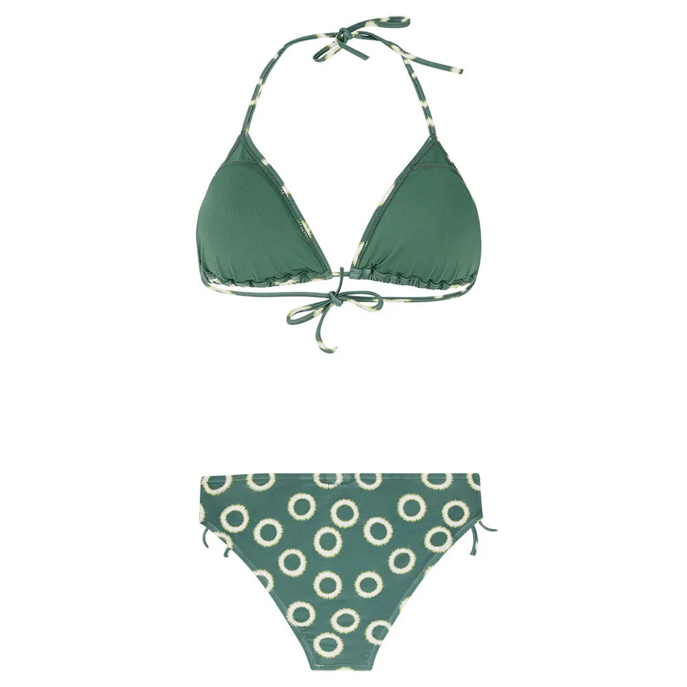 -PVRE Green, переработанный материал, купальник стандартного кроя, верх бикини с треугольными чашечками, среднюю степень покрытия, шнурок, стандартная талия, съемные подкладки.