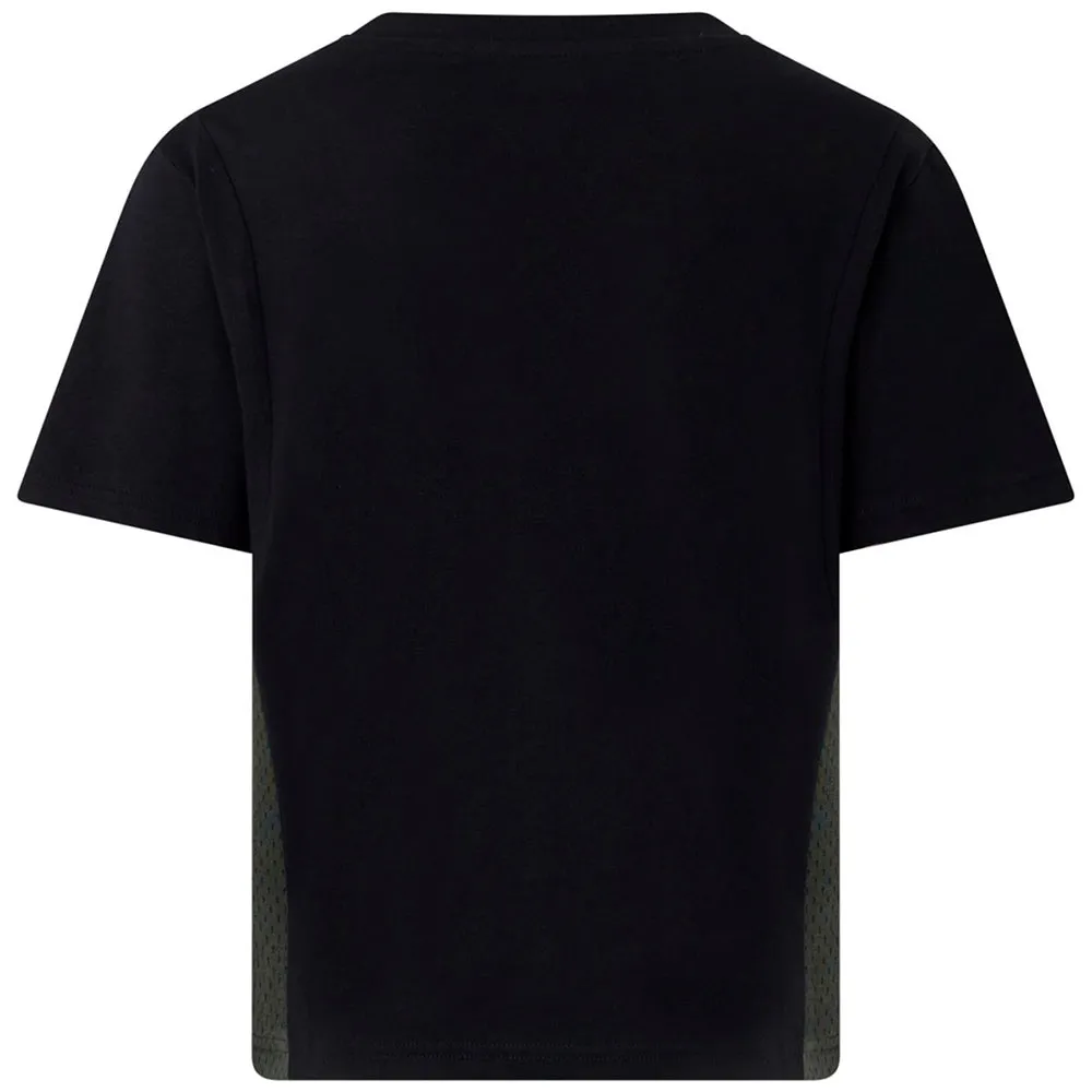 Круглый вырез горловины, короткие рукава, сетчатые вставки по бокам.