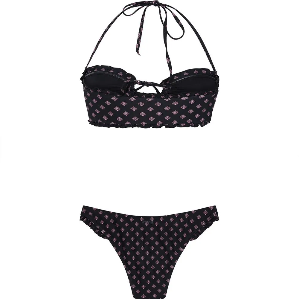 Этот великолепный комплект бикини отличается потрясающим графическим принтом и привлекательной завязкой спереди.