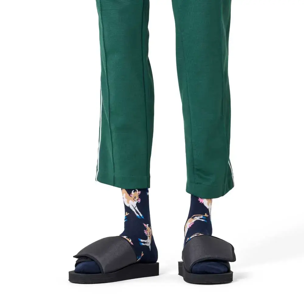 Откройте для себя забавные носки в виде коровы с радостным рисунком коровы на гладком черном фоне, которые идеально подойдут для добавления игривого штриха к любому наряду.