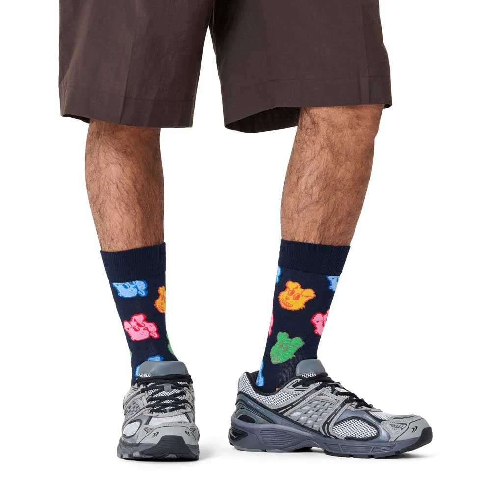 Разноцветные носки для собак с повторяющимся узором из очаровательных собачьих мордашек, идеально подойдут любителям собак и поклонникам необычных носков.