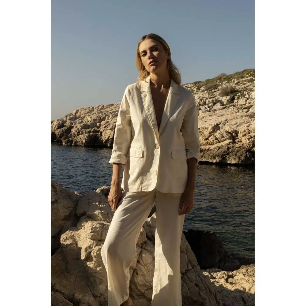 Изготовленный из высококачественной льняной ткани, DEELUXE Dawn Blazer обеспечивает исключительный комфорт и воздухопроницаемость. Лен, известный своей естественной мягкостью и прочностью, красиво драпируется и со временем приобретает уникальную патину, добавляя блейзеру вневременную привлекательность. Легкая ткань делает его идеальным для ношения круглый год, обеспечивая тепло в прохладные дни и воздухопроницаемость в теплые месяцы.