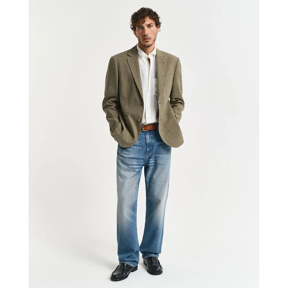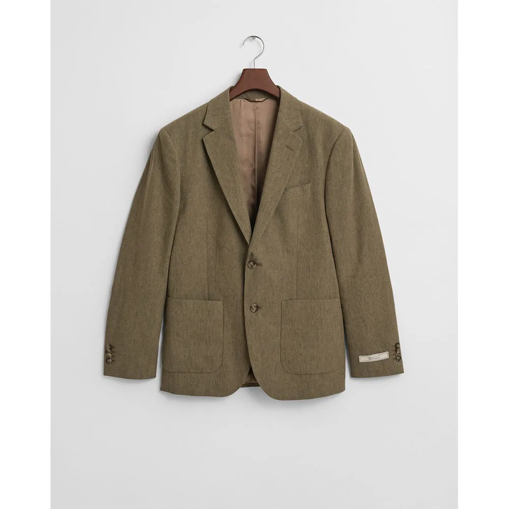 Однобортный дизайн имеет застежку на две пуговицы, два передних накладных кармана и пуговицы из био-рога для изысканного, премиального вида. Изделие изготовлено из сертифицированных искусственных целлюлозных волокон, что гарантирует сохранение биоразнообразия в лесном хозяйстве.
