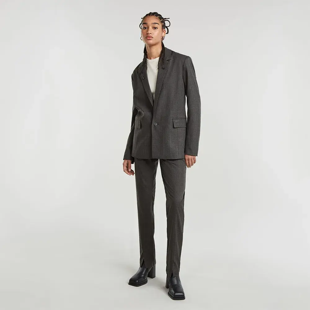 Пиджак в клетку Boyfriend имеет свободный крой, застегивается на одну пуговицу и полностью на подкладке.