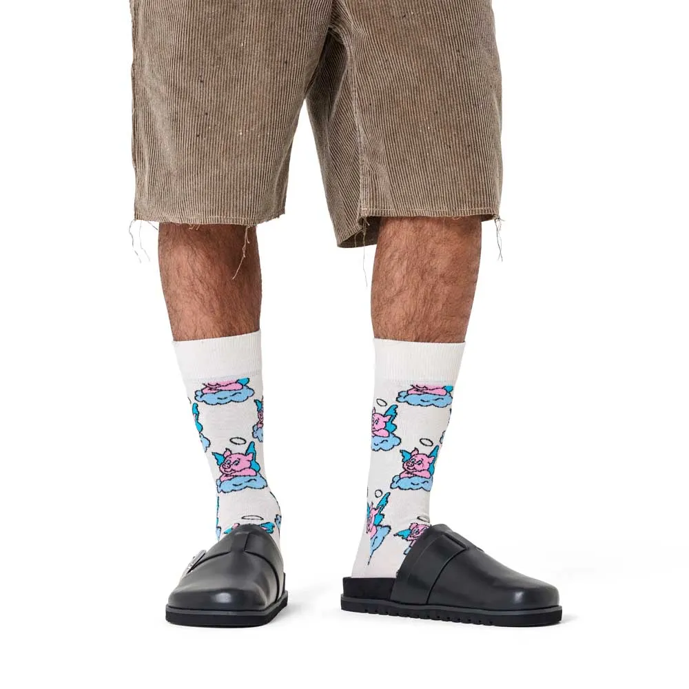 Добавьте немного причудливости с нашими носками Good Pig, на которых изображены свиньи с ангельскими крыльями на облаках.