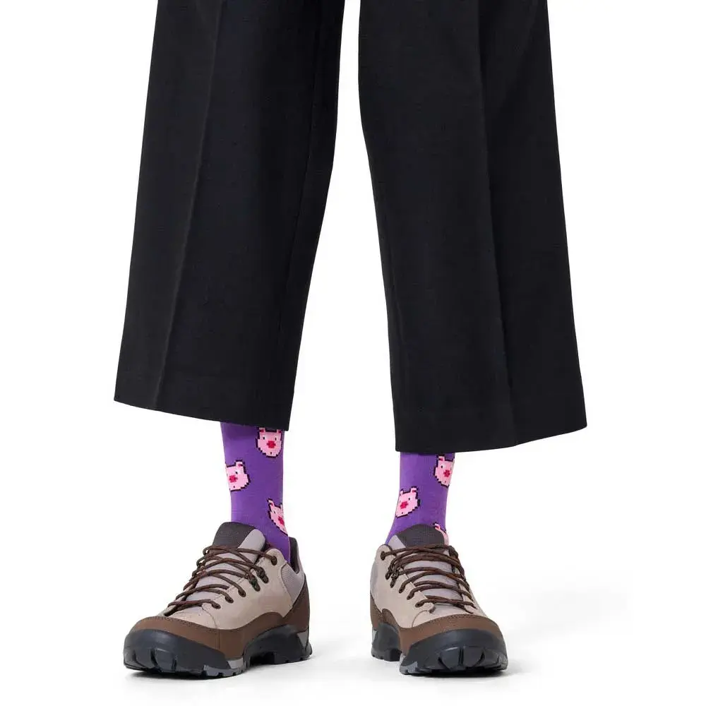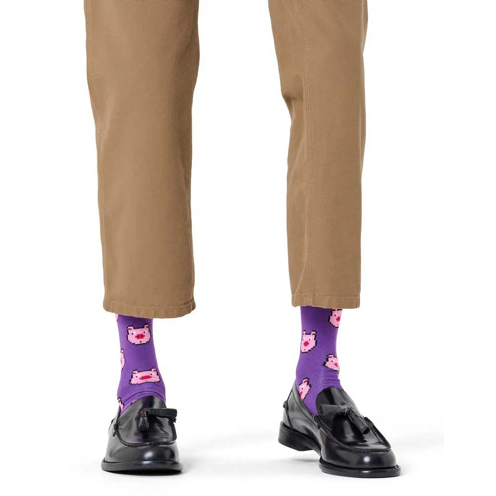 Приготовьтесь хрюкать со стилем в наших фиолетовых носках с пикселизированными мордочками свиньи, забавной вариации на тему носков с животными, которая вызывает улыбку.