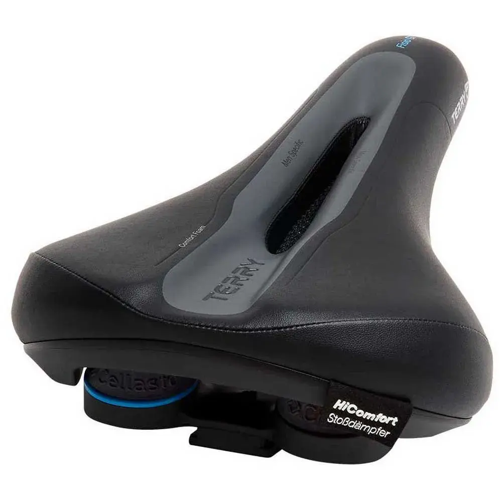 Настоящее мастерство. Комфортное мужское седло уменьшает нагрузку на спину. Конструкция седла имеет стройную общую форму. Благодаря принципу 3-зонного комфорта Terry проблемы с седлом остались в прошлом. Это седло особенно удобно для спины благодаря высокоэффективным амортизаторам Cellasto HiComfort, которые разработаны и изготовлены в сотрудничестве с BASF в Германии. Идеально подходит для города, поездок на большие расстояния.