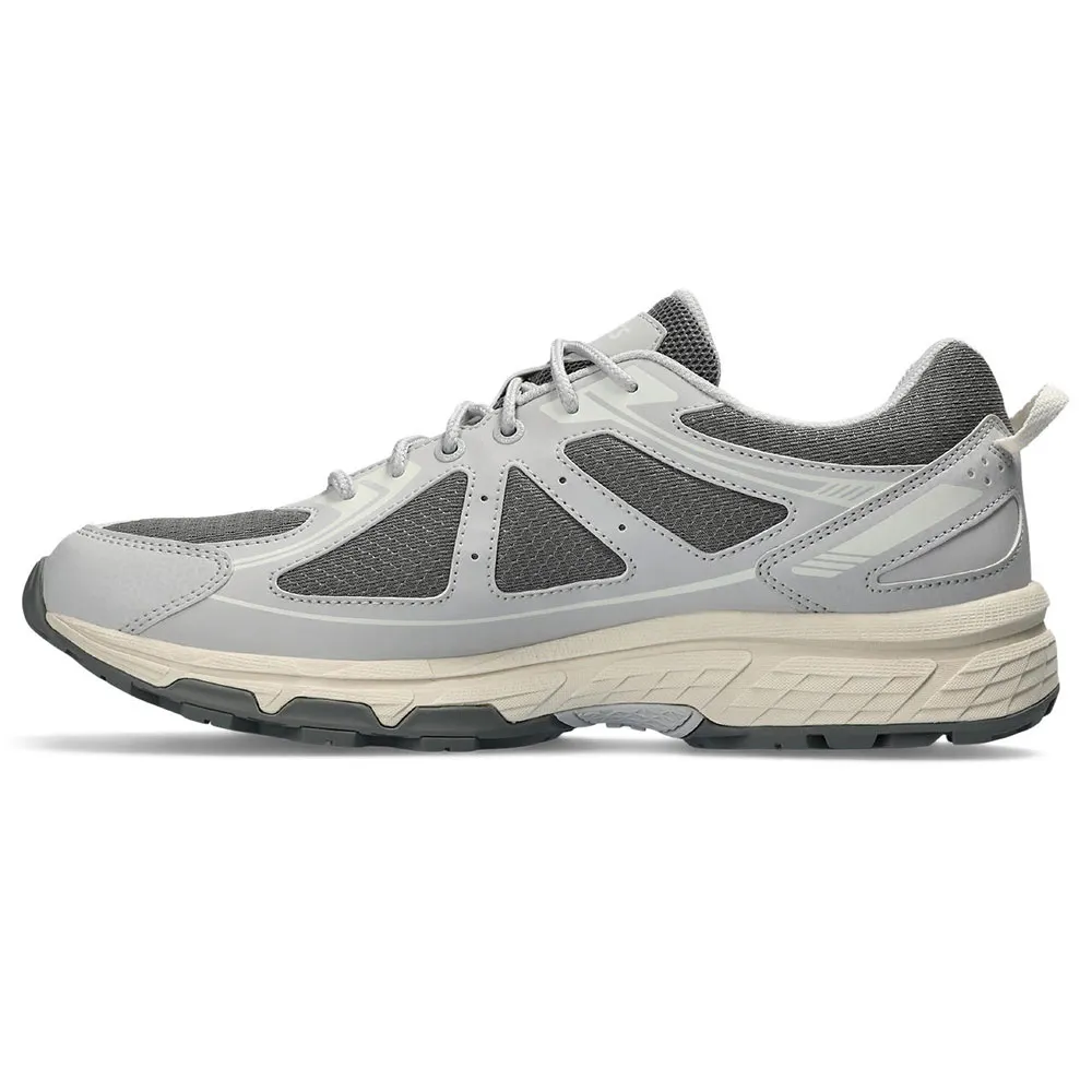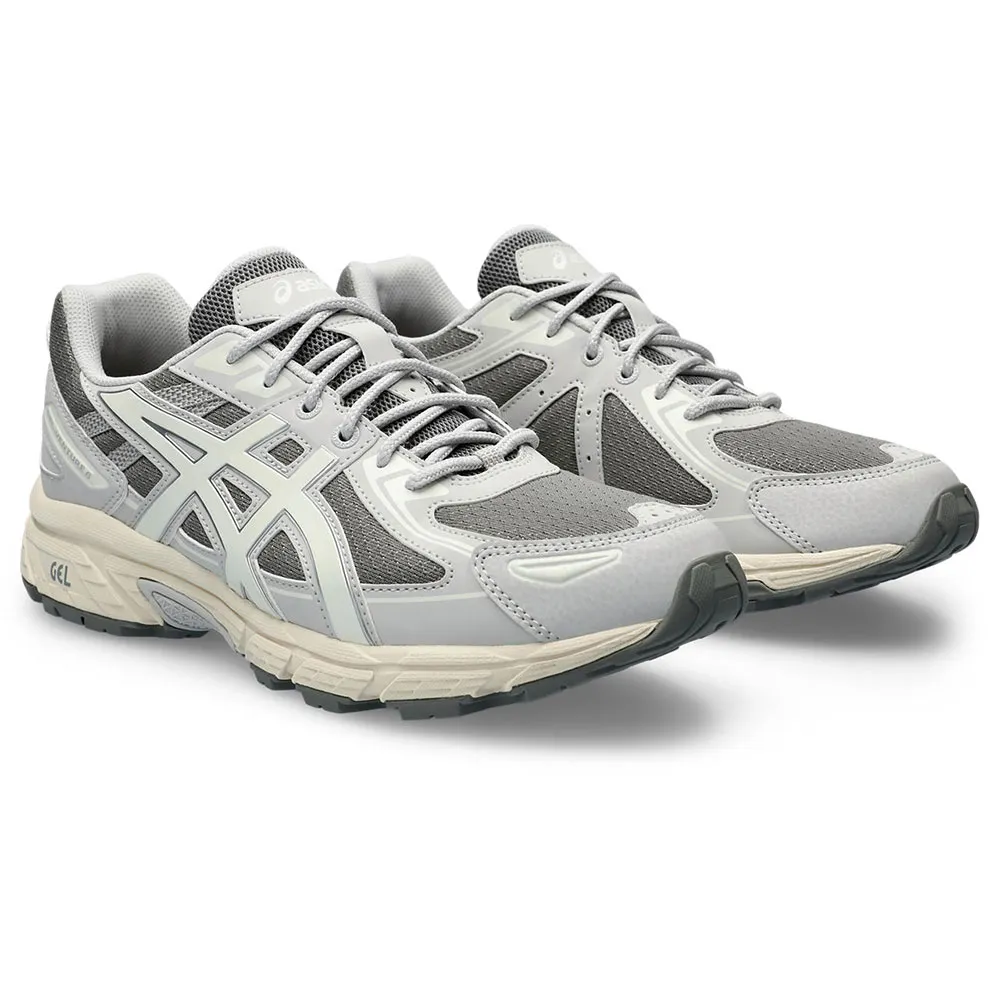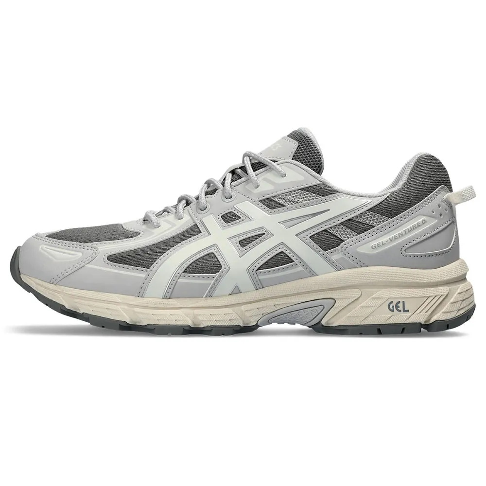 Трейловые кроссовки Gel-Venture 6 были модифицированы для современных городских исследователей. Традиционные материалы были переработаны для тех, кто предпочитает активный отдых на природе и городские улицы. Верх дополнен вставками из синтетической кожи для создания современного образа. Эти вставки также обеспечивают целевую поддержку, надежно фиксируя стопу. Кроме того, технологический процесс включает в себя технологию гелевой поддержки в задней части стопы и специальный рисунок протектора для бездорожья. Эти компоненты работают в унисон, обеспечивая улучшенную амортизацию и сцепление на различных поверхностях.