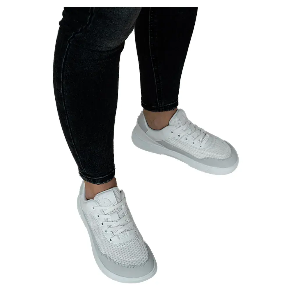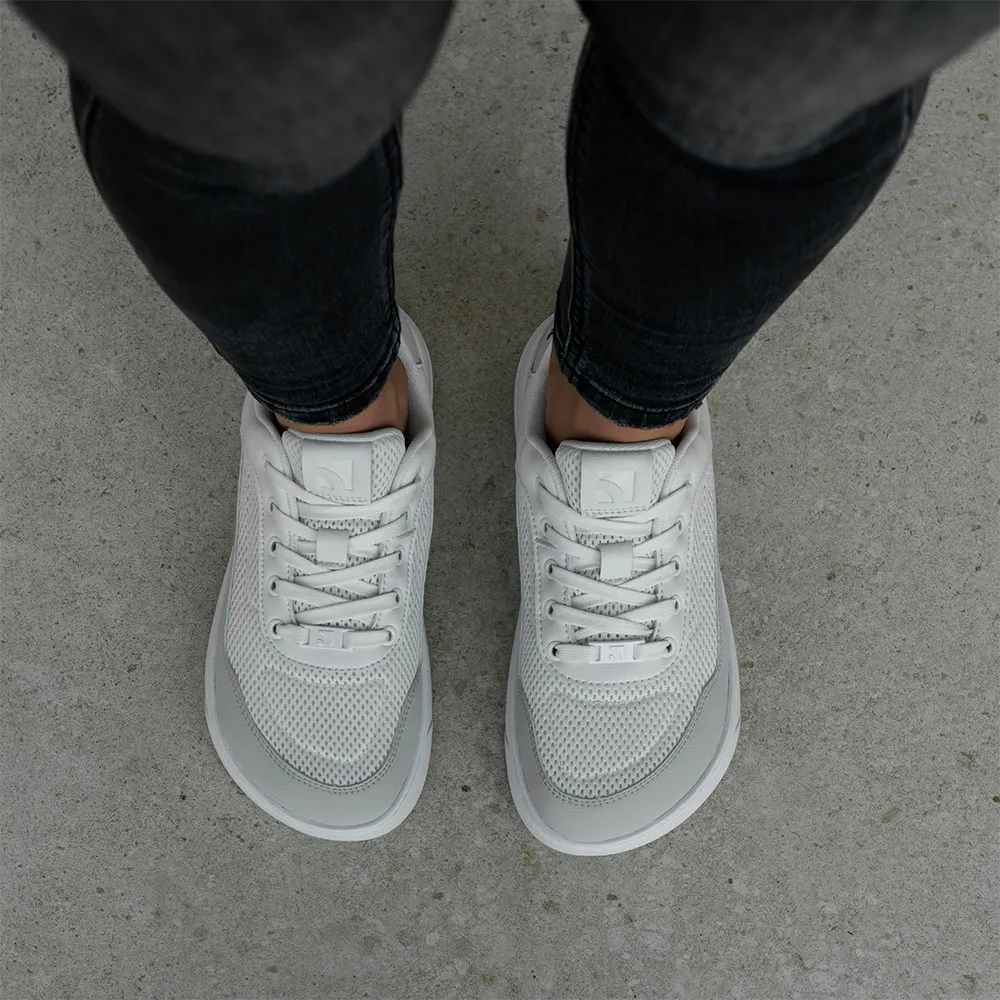 Кроссовки Barebarics Vaporo, доступные в белом и бледно-сером цветах, сверхлегкие, гибкие и удобные, даже если вы весь день на ногах.