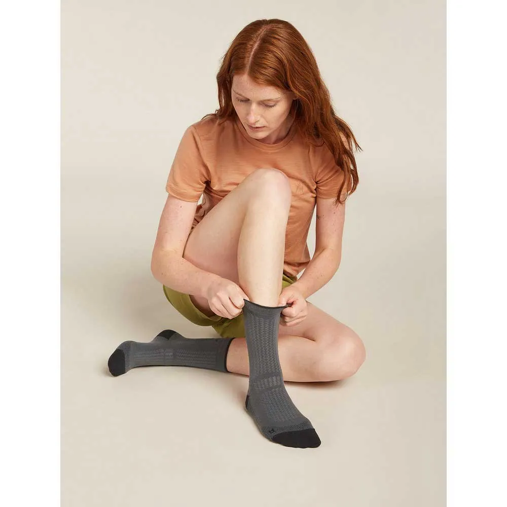 Носки Hike+ Ultralight Quarter с легкой амортизацией и дышащей текстурой, изготовленные из смеси мериносовой шерсти, разработаны для пеших прогулок и походов с рюкзаком, где отвод тепла и регулировка температуры являются приоритетом. Они имеют анатомический крой для точной посадки.