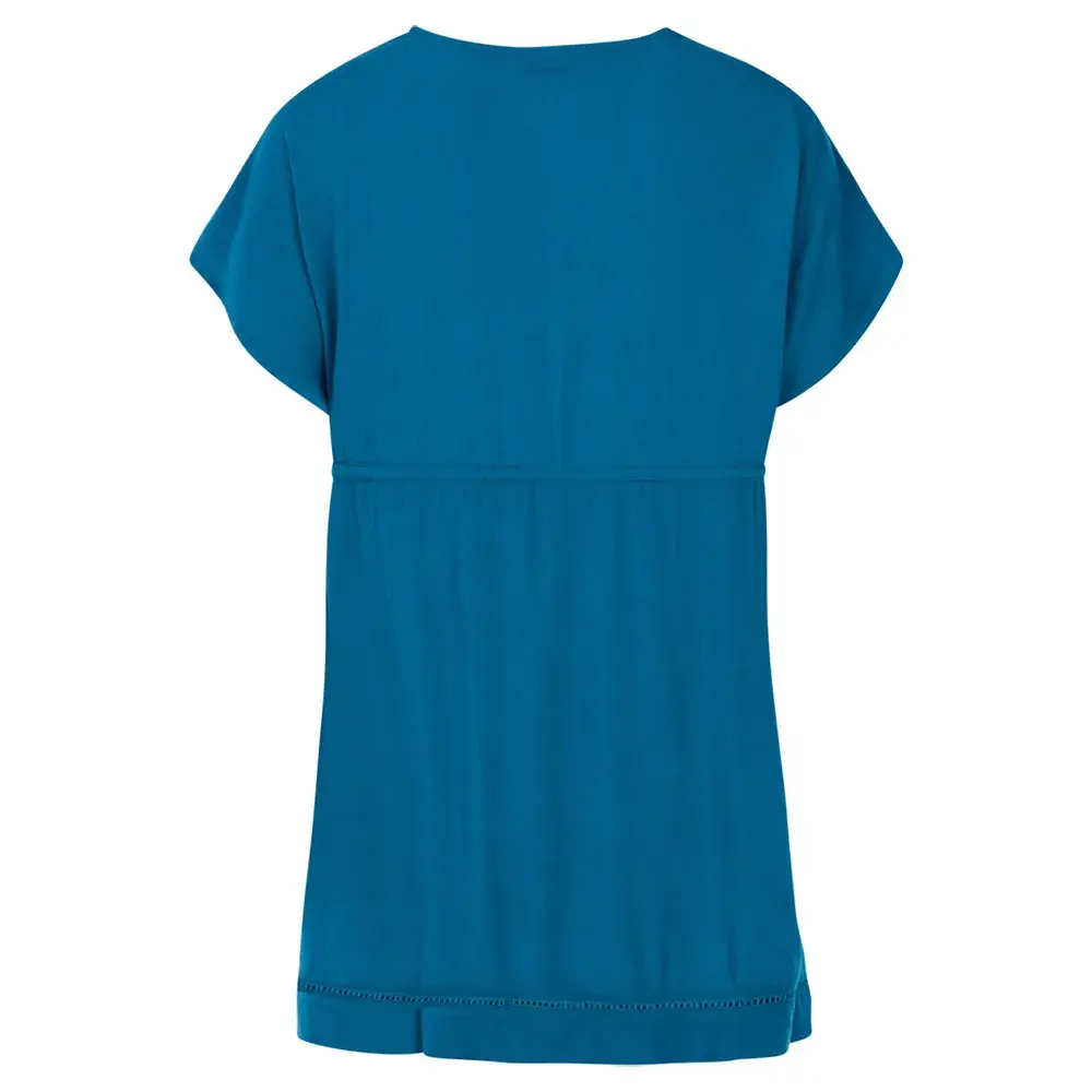 Благодаря свободному крою, коротким рукавам и подчеркивающему фигуру V-образному вырезу она идеально подходит для теплых дней.
