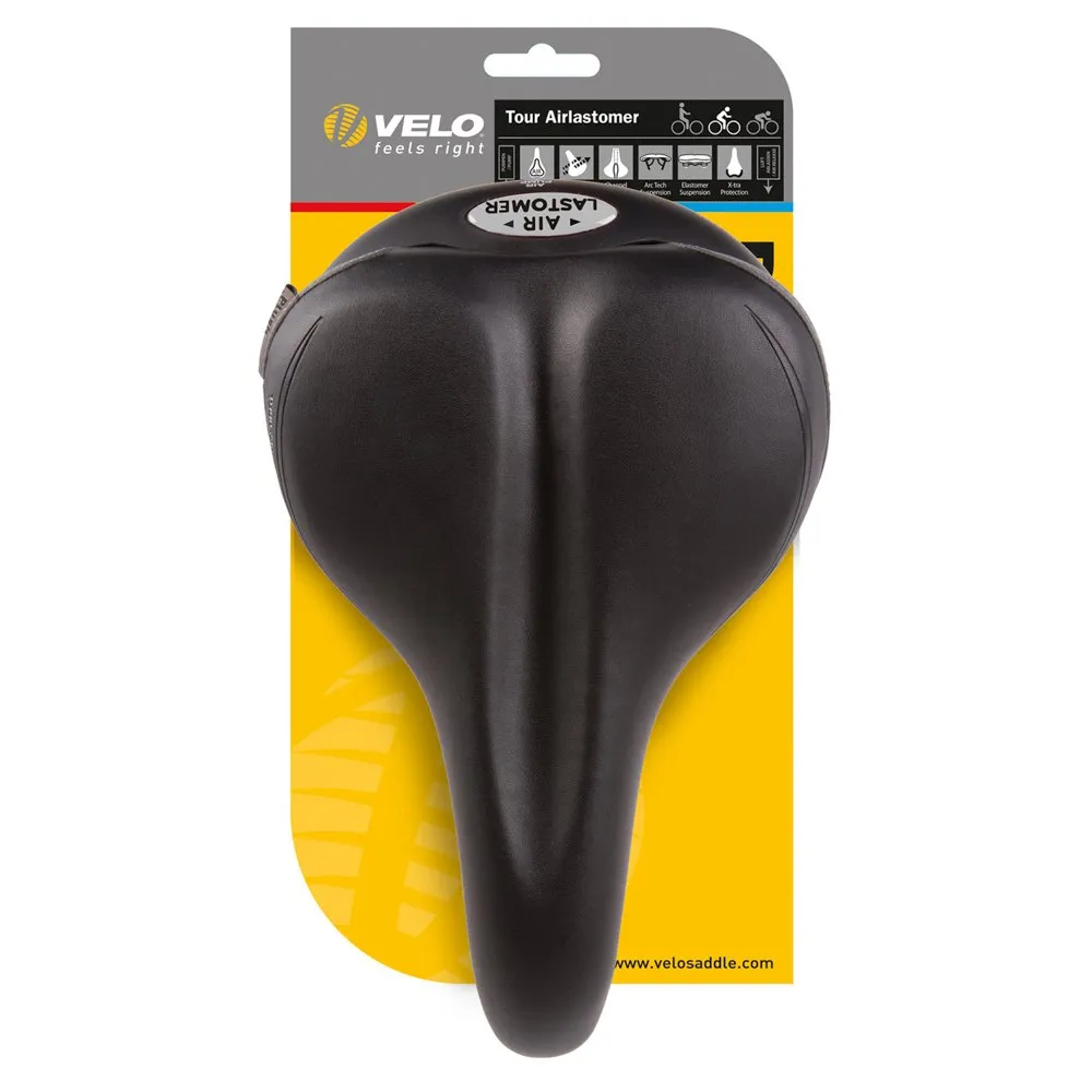 Помимо воздушной пены, VELO Tour Air может похвастаться продуманным дизайном, ориентированным на комфорт водителя и эксплуатационные характеристики. Форма седел эргономично оптимизирована для поддержки естественной кривизны сидячих костей, способствуя сбалансированному и эффективному вращению педалей. Центральный канал с вырезом дополнительно снижает давление на промежность, усиливая кровоток и уменьшая онемение. Эта функция особенно полезна при длительных поездках и способствует общему комфорту при езде.