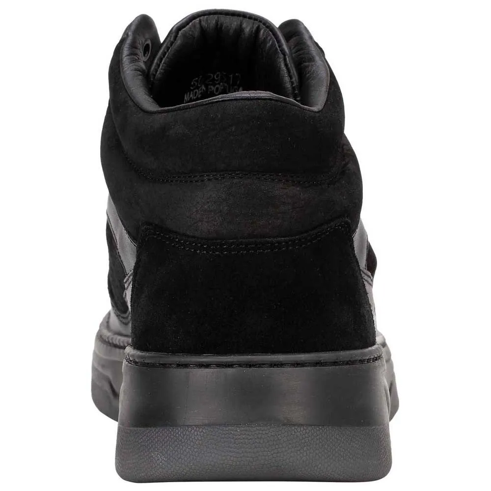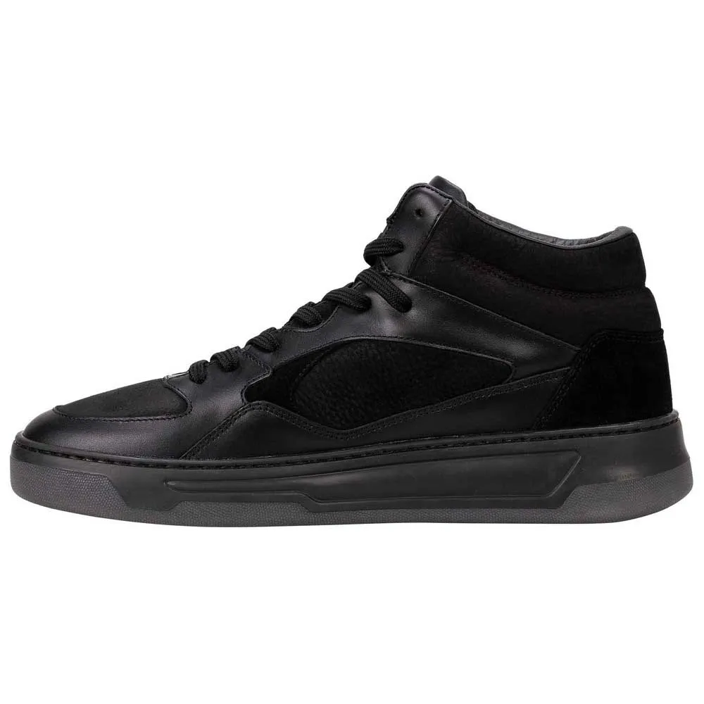 Богато сконструированные высокие теннисные кроссовки с верхом из комбинированной кожи и нубука.