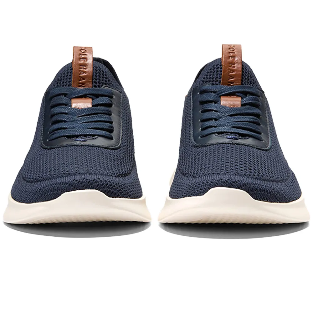 Верх из материала Stitchlite на 80 процентов состоит из материала темно-синий блейзер и морской синий, а верх из кожи на 20 процентов — из кожи британского бежевого цвета.