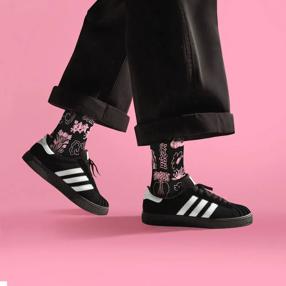 Графика Pink Trail, вызывающая ассоциации с тихой, созерцательной прогулкой, символизирует «медленное движение»: превращение мгновений в волшебный опыт, наполненный стилем и единением с природой.