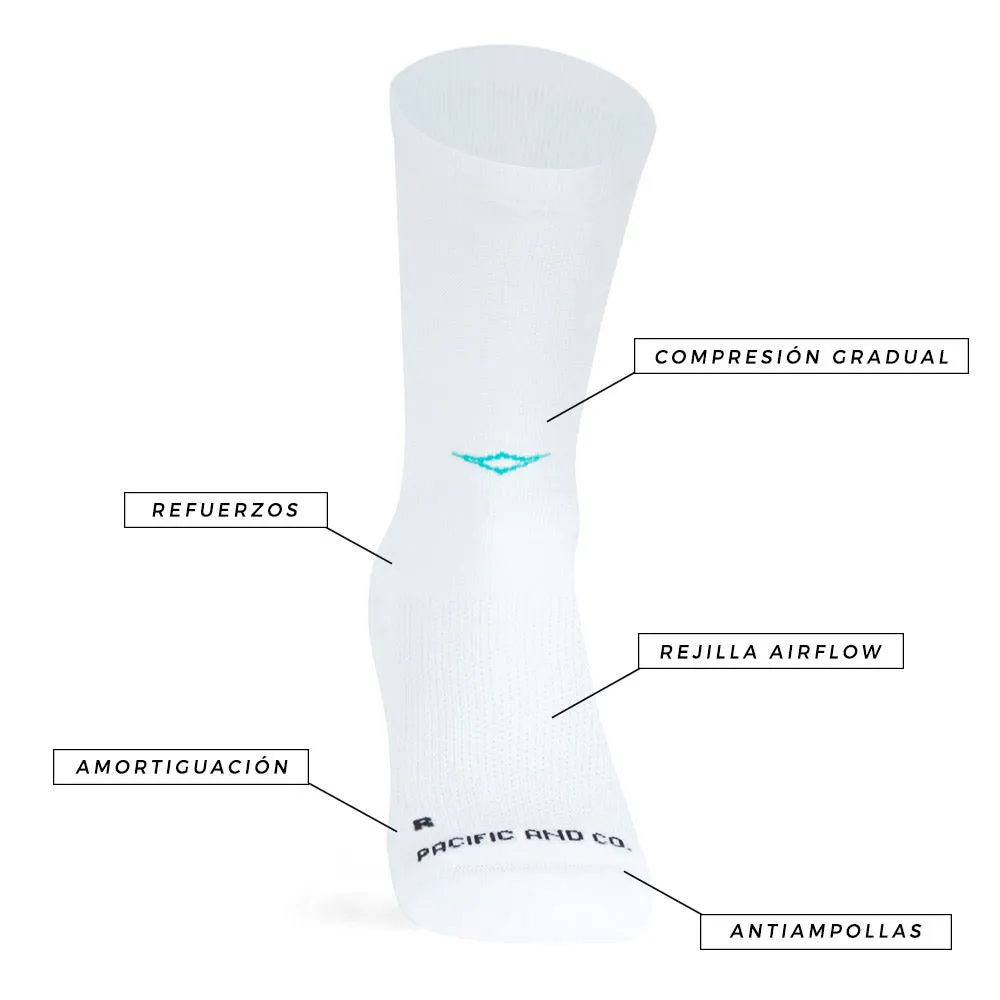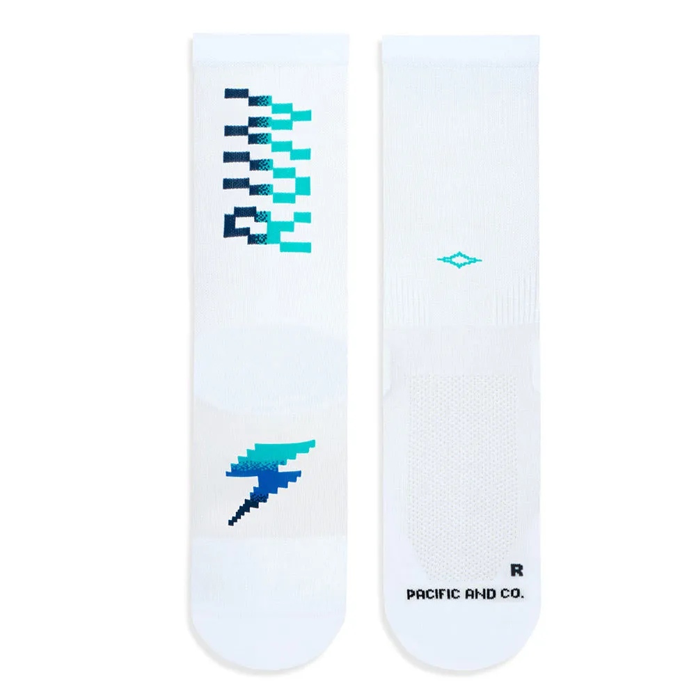 Носки THUNDER разработаны для тренировок и соревнований высочайшего уровня, обеспечивая плотную посадку и градуированную компрессию. Они оснащены усиленными вставками в области пятки, носка и плюсневой кости, а также сетчатым подъёмом для лучшей вентиляции и отвода влаги. Носки имеют точную посадку по ноге для правой и левой ноги, а также уникальный дизайн на заднике: пикселизированная надпись RUN на одной ноге и розовая молния. Это дань вашей скорости и энергии.