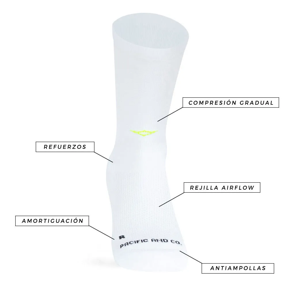 Носки THUNDER разработаны для тренировок и соревнований высочайшего уровня, обеспечивая плотную посадку и градуированную компрессию. Они оснащены усиленными вставками в области пятки, носка и плюсневой кости, а также сетчатым подъёмом для лучшей вентиляции и отвода влаги. Носки имеют точную посадку по ноге для правой и левой ноги, а также уникальный дизайн на заднике: пикселизированная надпись RUN на одной ноге и розовая молния. Это дань вашей скорости и энергии.