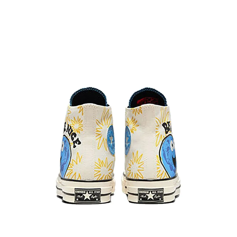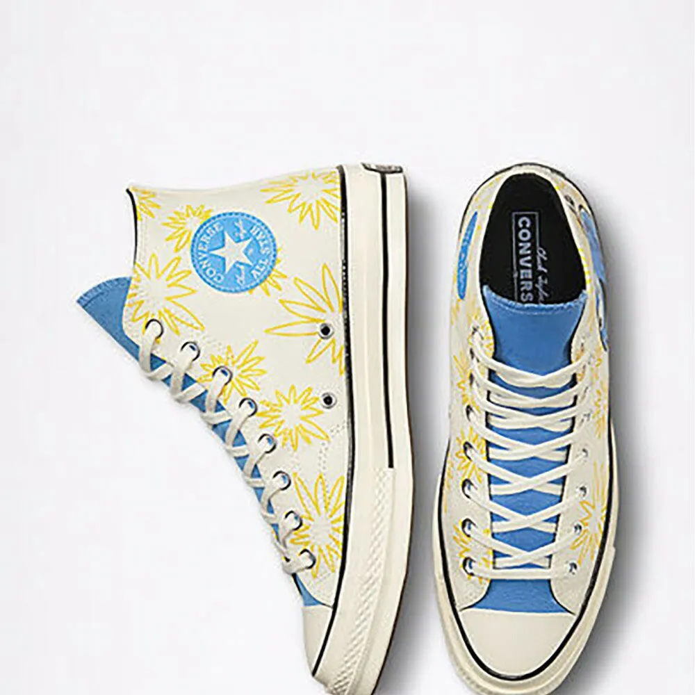 Яркие цвета и безудержная радость исходят от премиальных кроссовок Chuck 70, наполняя их атмосферой позитива. Солнечная цветочная графика на внутренней стороне, а красочная надпись «Be Nice» на внешней стороне подчеркивает лёгкость и яркость. Классические полоски на межподошве, резиновый бампер и резиновый наносок – основа этой модели, основанной на нашем наследии, а современные обновления, такие как стелька OrthoLite и язычок с крыльями, обеспечивают комфорт.