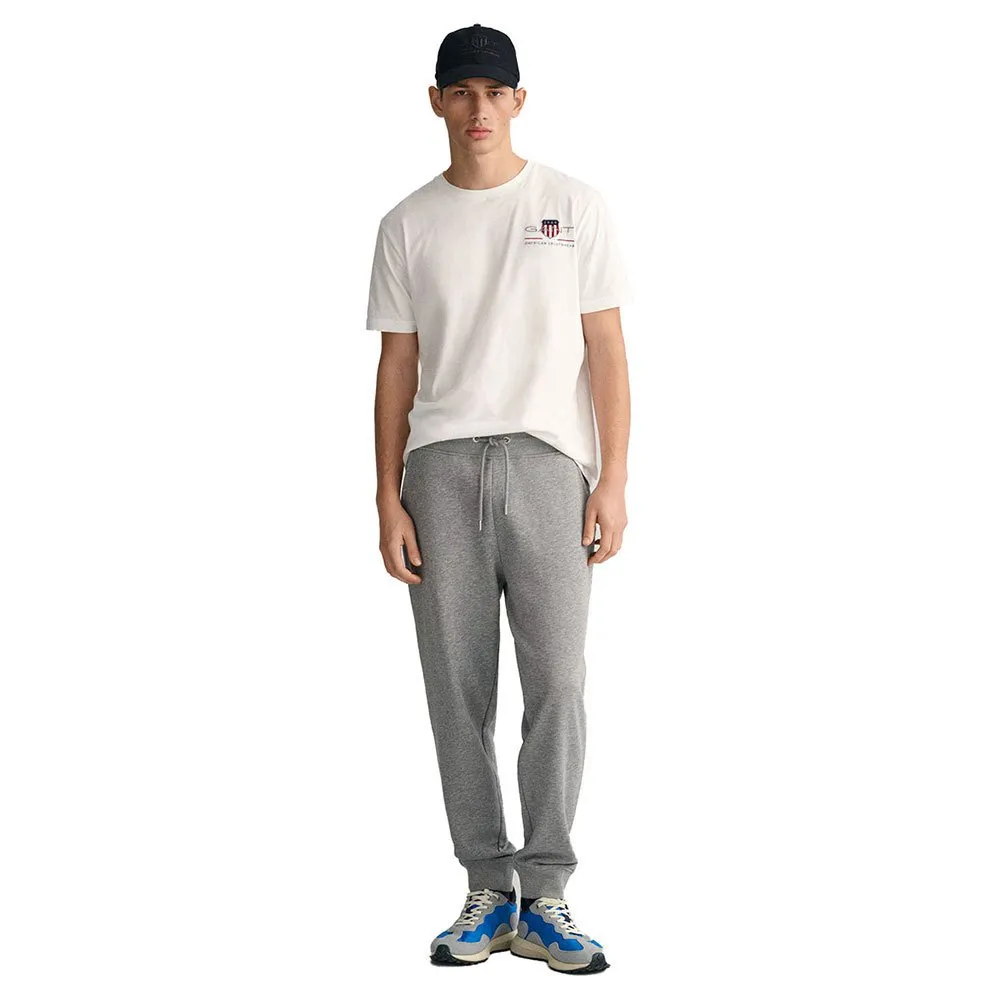 Эти спортивные штаны украшены небольшой вышитой графикой щита GANT на левой штанине.