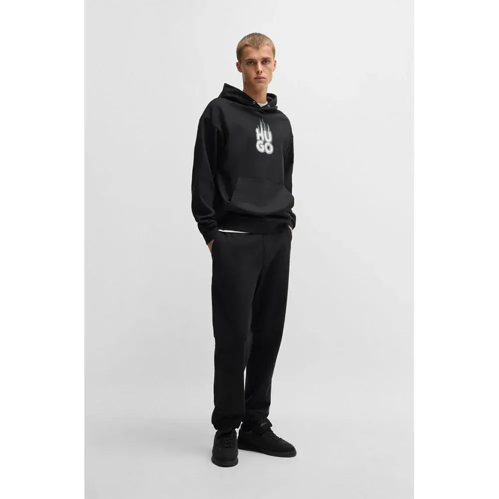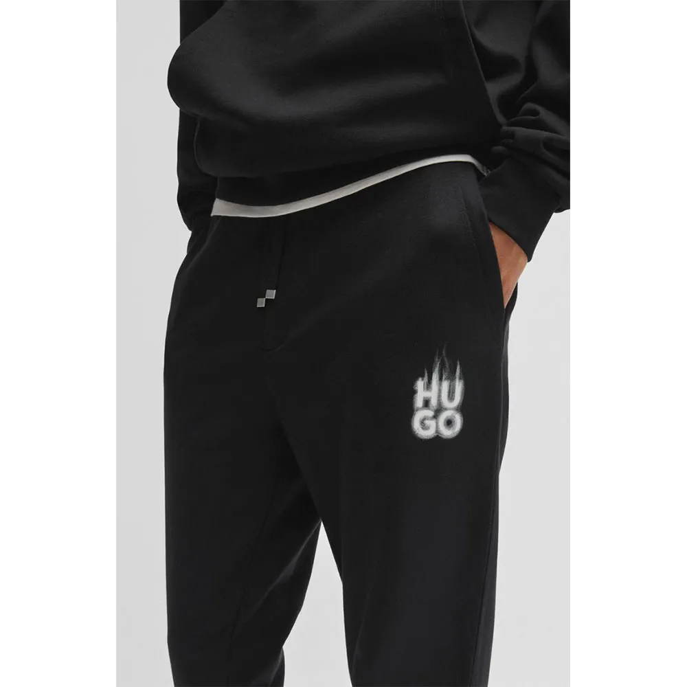 Фирменные спортивные брюки из плотного французского трикотажа от HUGO Menswear. Свободный крой дополнен принтом логотипа HUGO в виде дыма. Сырье для этого изделия получено из регенеративного сельского хозяйства: подхода, направленного на сохранение и восстановление, который направлен на увеличение биоразнообразия, сохранение качества воды и улучшение здоровья почвы, а также поглощение CO2. Регенеративное сельское хозяйство также способствует благополучию животных и справедливым условиям труда для фермеров.