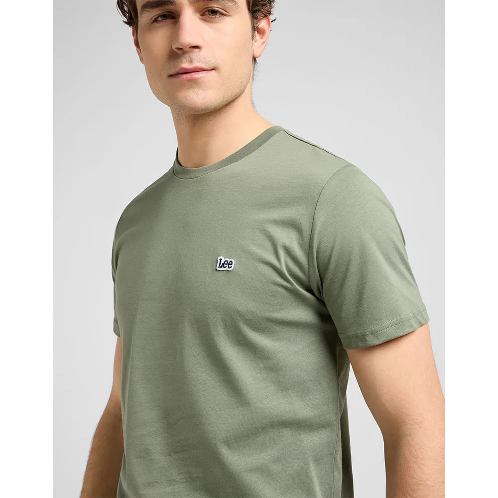 С короткими рукавами, круглым вырезом и небольшим нашивкой с логотипом.