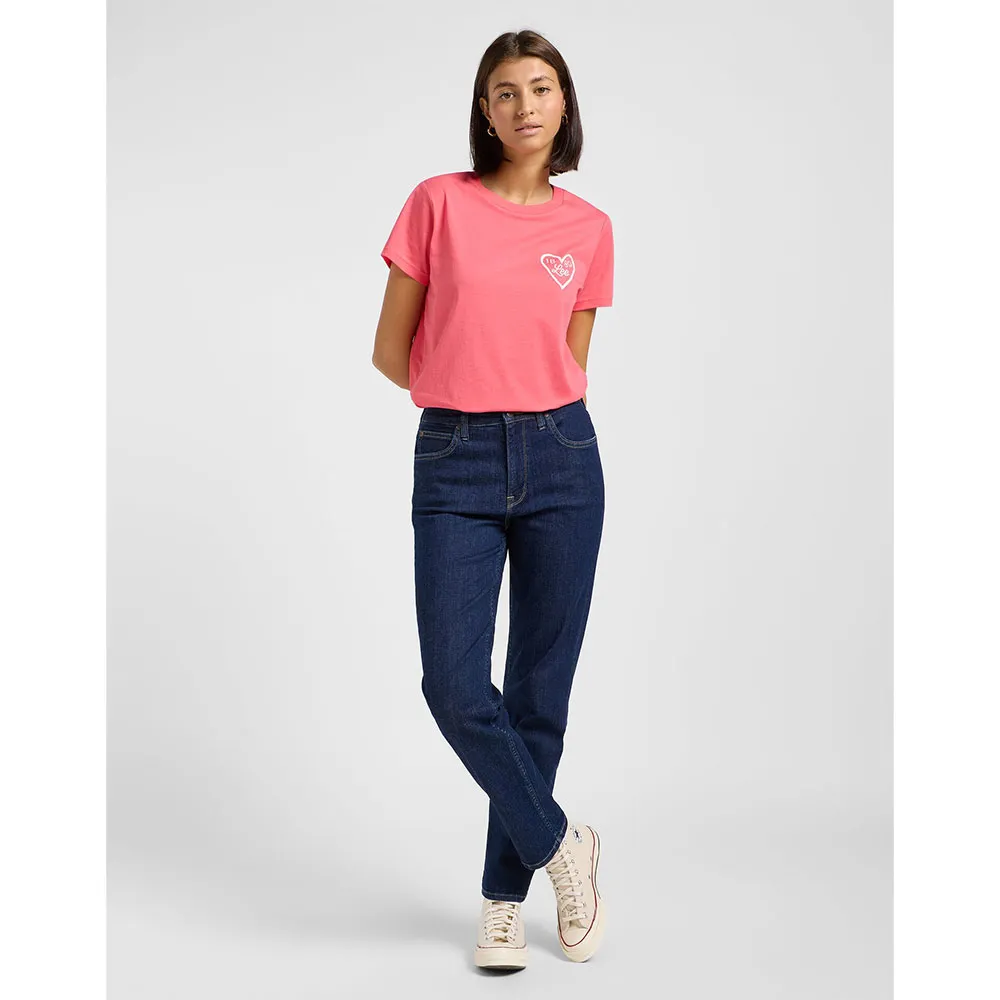 Эта футболка с маленьким логотипом имеет удобную посадку, которую можно заправить в джинсы или оставить как есть, и украшена маленьким сердечком на груди.
