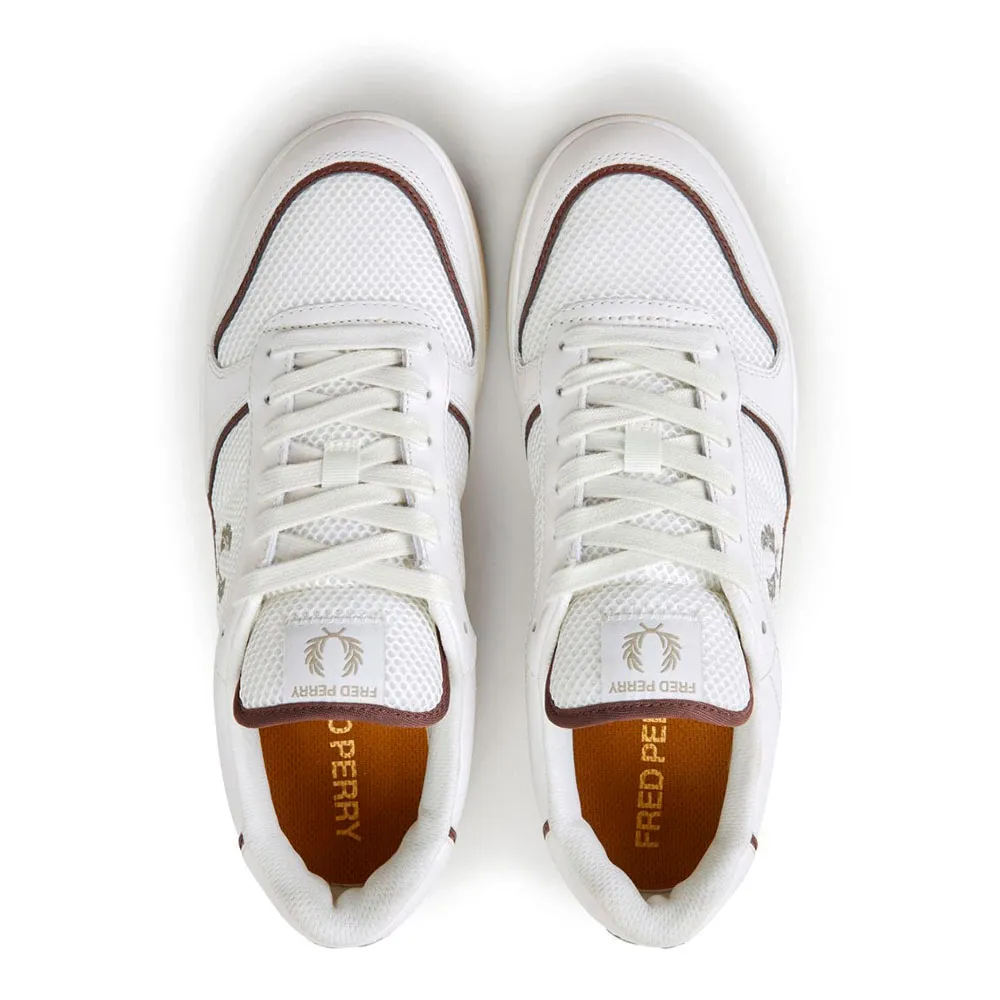 КРОССОВКИ FRED PERRY. Мягкая натуральная кожа B300 со спортивным дизайном и сетчатой отделкой на боковой части. Верх из натуральной кожи без добавления хрома / Боковая часть из переработанной сетки с полиуретановой подкладкой / Шнурки из переработанного полиэстера / Сетка из переработанного полиэстера