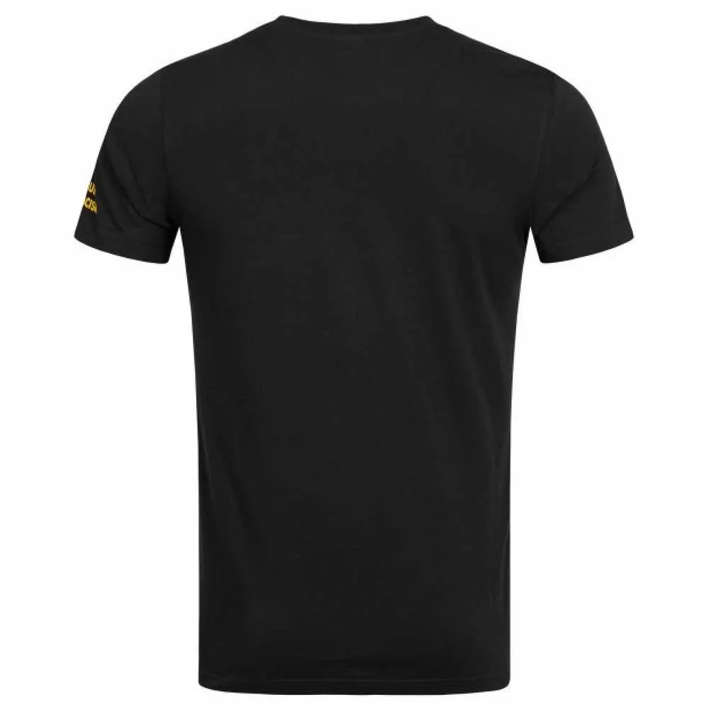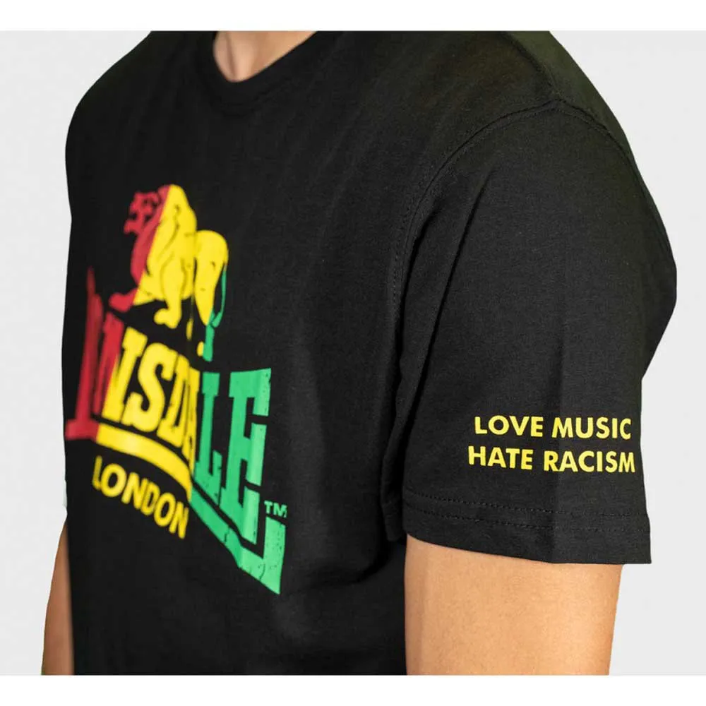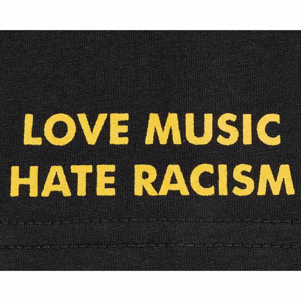 Левый рукав украшен надписью «LOVE MUSIC HATE RACISM».