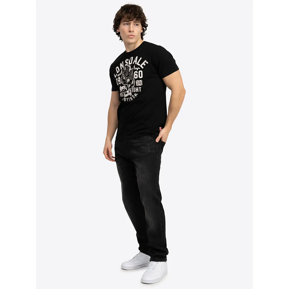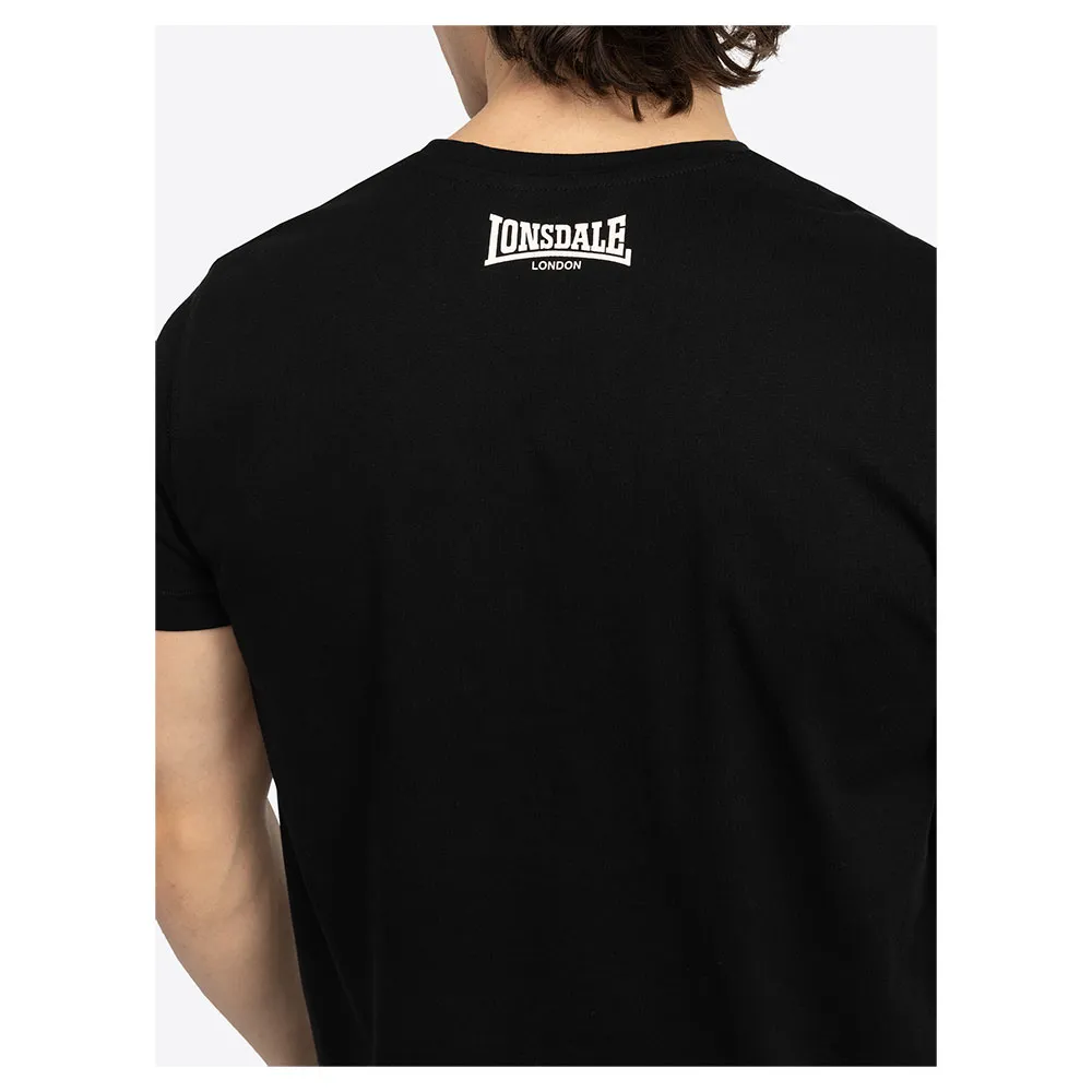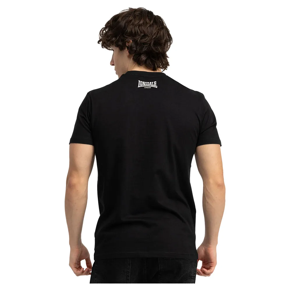 Футболка с круглым вырезом и двумя разными логотипами спереди и сзади. Вырез оформлен эластичной манжетой в рубчик. В боковом шве есть небольшая этикетка.