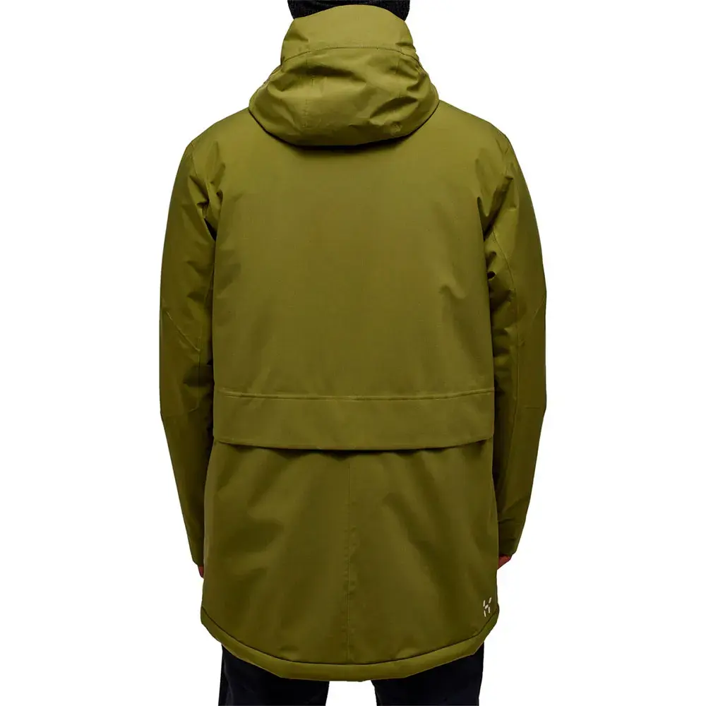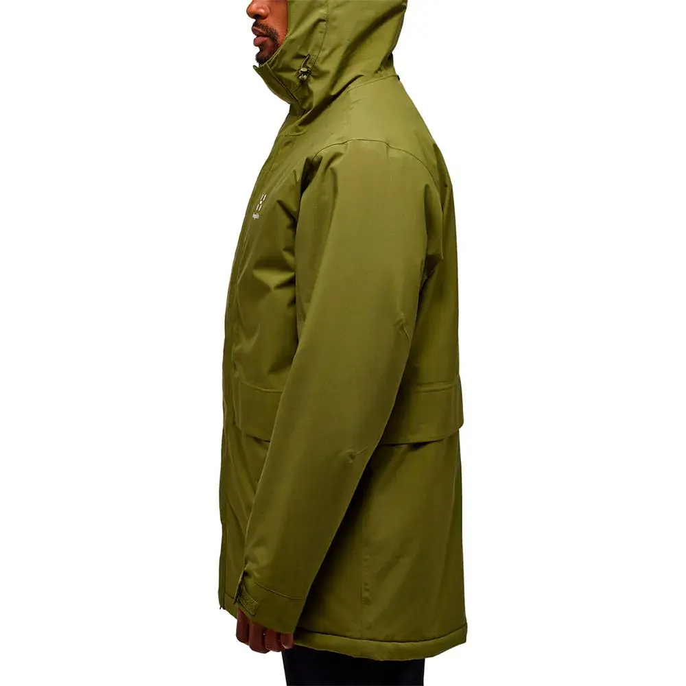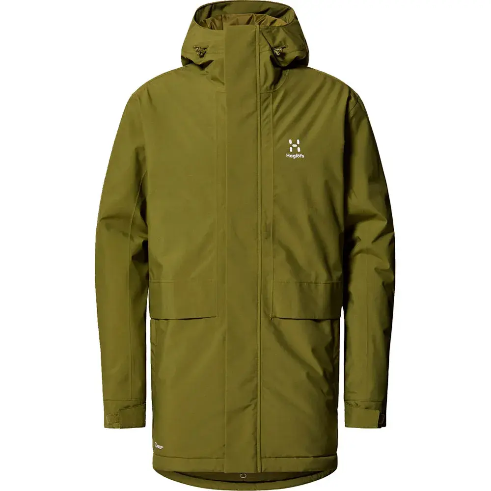 Она изготовлена из переработанной ткани PROOF, которая действует как легкий и дышащий барьер от ветра и дождя, и наполнена Mimic Silver, утеплителем из переработанного полиэстера с отличным соотношением тепла и веса.