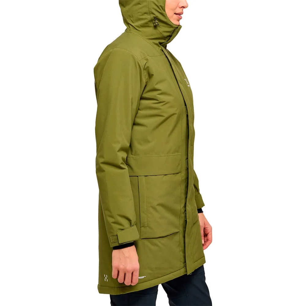 Она изготовлена из переработанной ткани PROOF, которая действует как легкий и дышащий барьер от ветра и дождя, и наполнена Mimic Silver, утеплителем из переработанного полиэстера с отличным соотношением тепла и веса.