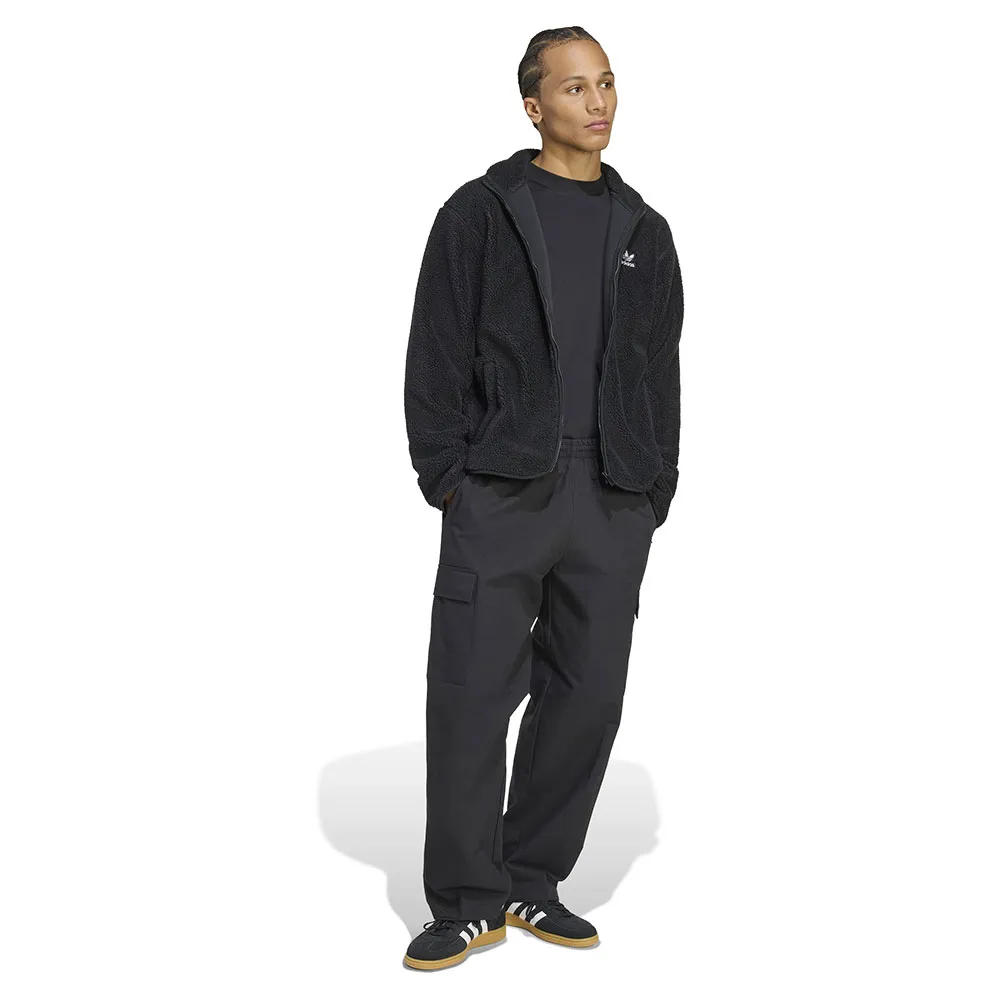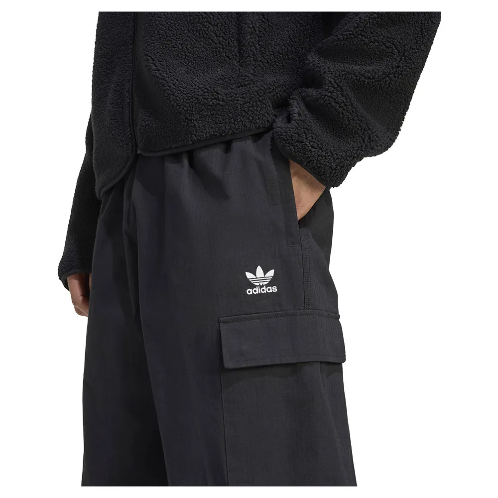 Карманы-карго на бедрах и застежки-молнии на штанинах добавляют утилитарный штрих, а отличительный логотип-трилистник сбоку сохраняет спортивный стиль.