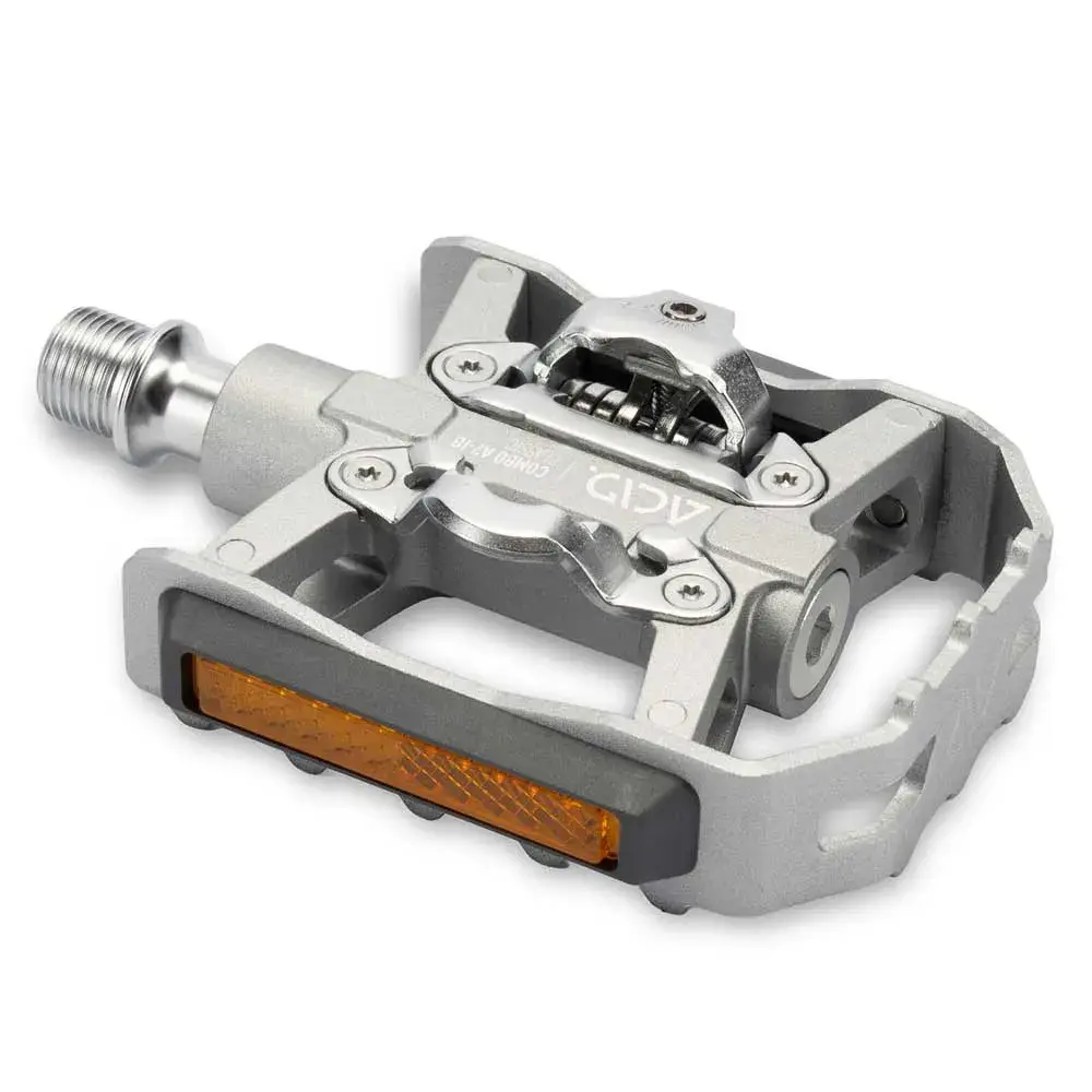 Благодаря внешнему виду в стиле ретро, откидному дизайну и совместимости с бесклипсовой педалью SPD ACID pedal COMBO A7-IB Classic предлагает лучшее из всех возможных решений. Алюминиевый каркас со встроенными штифтами для надежного захвата идеально подходит для использования с любой обувью, предлагая функциональность "просто надевай и уходи". С обратной стороны система крепления, совместимая с SPD, позволяет пристегивать любую обувь, оснащенную шипами SPD, для более спортивной езды. Светоотражатели, сертифицированные StVZO, соответствуют всем немецким правилам дорожного движения и обеспечивают дополнительную видимость. Герметичные промышленные и игольчатые подшипники, а также ось Cr-Mo с ЧПУ обеспечивают длительный и безотказный срок службы.