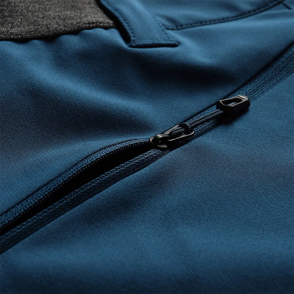 Брюки оснащены двумя передними карманами, набедренным карманом на молнии и профилированными коленями.