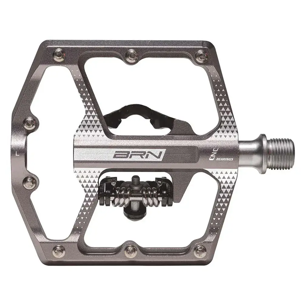 Двухфункциональные педали BRN Linx MTB/Gravel из титаново-алюминиевого сплава с ЧПУ с осью Cr-Mo, 3 герметичными подшипниками и 8 съемными противоскользящими штифтами.