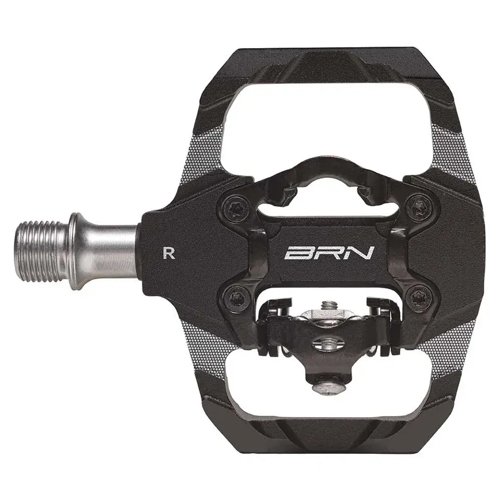 Двухфункциональные педали BRN Spark MTB/Gravel из алюминия с ЧПУ с осью Cr-Mo, 3 герметичными подшипниками и 4 съемными противоскользящими штифтами.