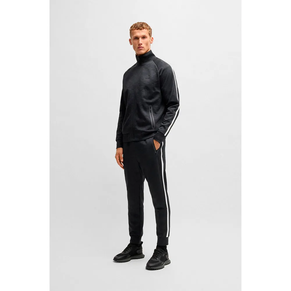 Эти спортивные брюки BOSS Menswear с карманами на молнии и спортивными полосками по бокам имеют нежный тональный рисунок. Свободный крой. Талия регулируется шнурком.