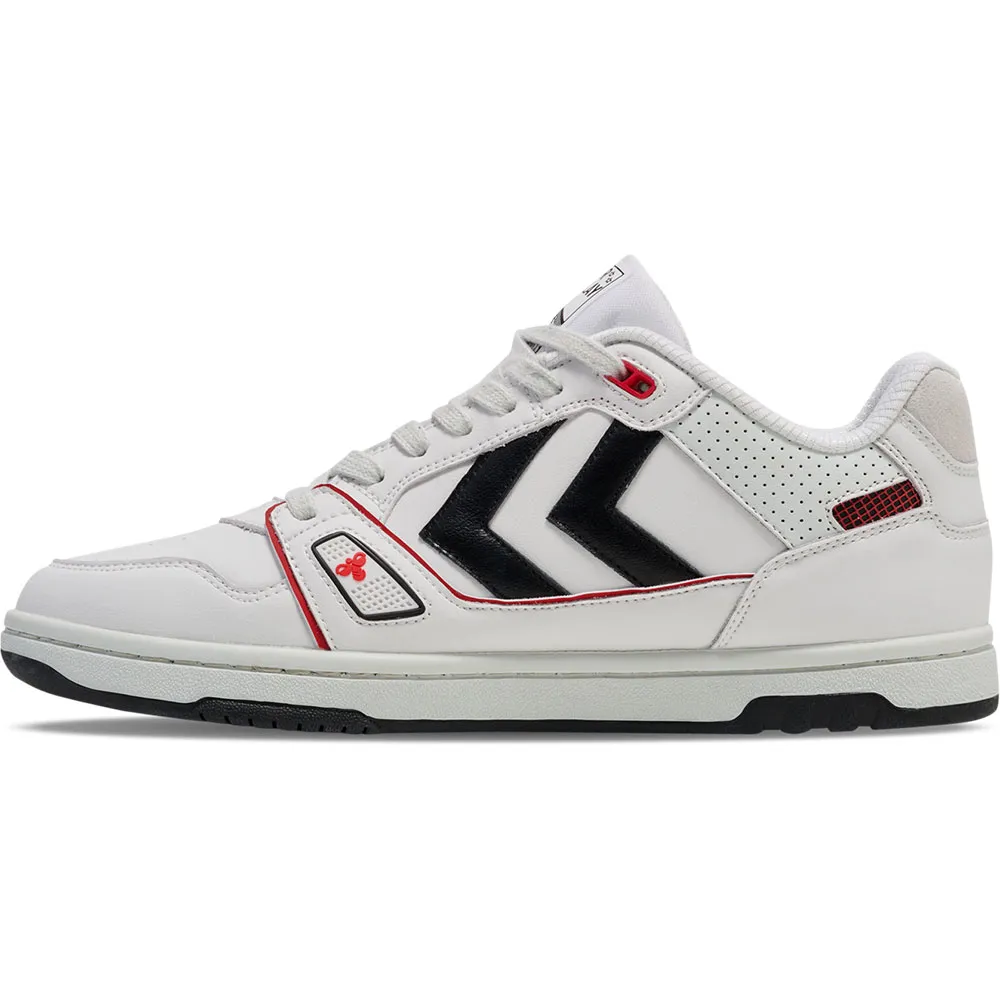 Эти низкие кроссовки, вдохновленные теннисными кортами, имеют верх из кожи с покрытием и классические шевроны Hummel.