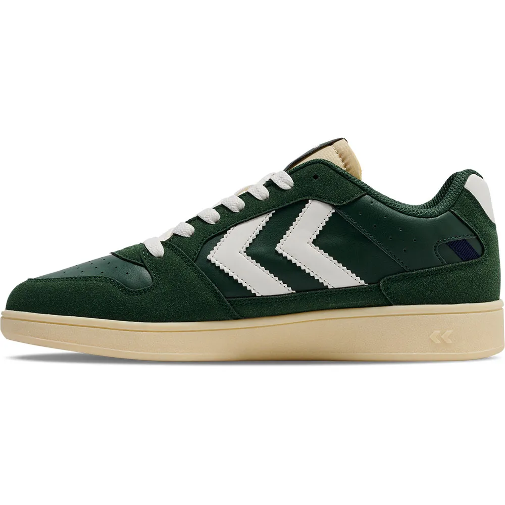 Знаменитые шевроны HUMMEL украшают боковые стороны, фирменный знак подлинности и спортивного наследия, который добавляет динамичный контраст к утонченному силуэту обуви. Дополнительные детали дизайна, такие как едва заметная перфорация на носке, не только повышают визуальную привлекательность, отдавая дань уважения его спортивным корням, но и способствуют воздухопроницаемости для повышенного комфорта в течение дня. Классическая система шнуровки обеспечивает надежную регулируемую посадку, гарантируя комфортную фиксацию вашей ноги, независимо от того, путешествуете ли вы по городским улицам или наслаждаетесь расслабленными выходными.