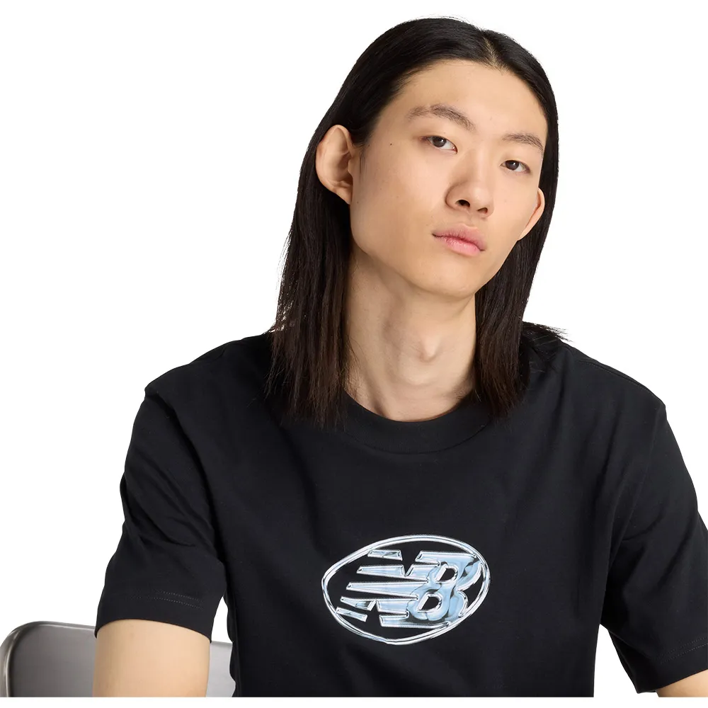 Хромированный графический принт для дополнительного стиля.