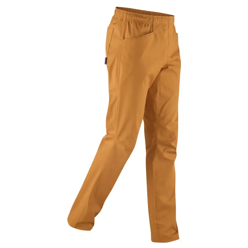 Легкие брюки для скалолазания и боулдеринга с зауженными брючинами надежно облегают фигуру благодаря эластичному поясу на пуговице и молнии и удобны для ношения под скалолазной обвязкой.