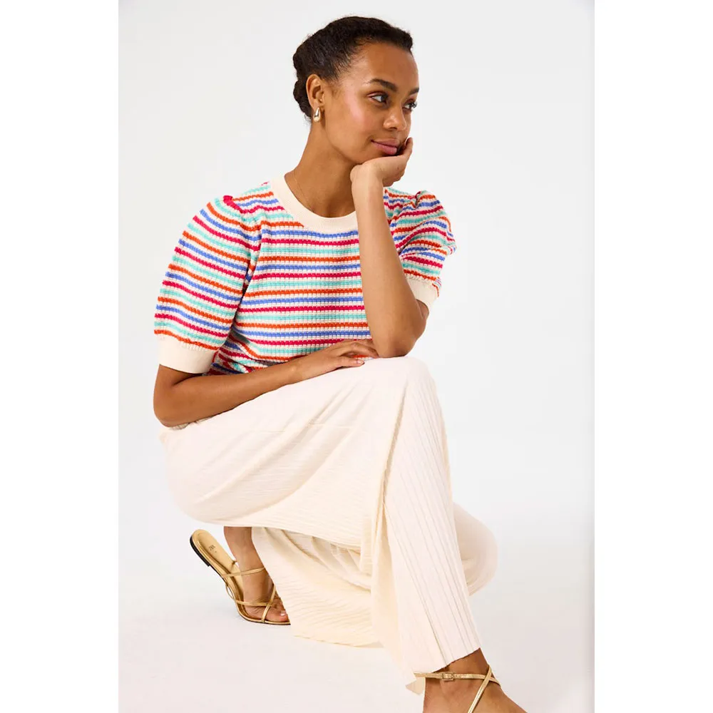 65% переработанного полиэстера, 32% вискозы, 3% эластана.